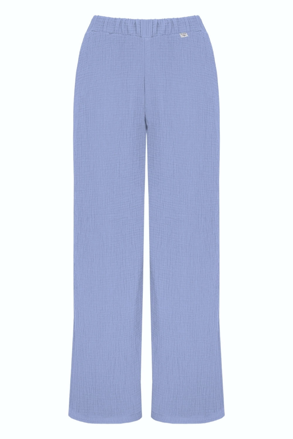 Uszyte z muślinu bawełnianego – oddychającego, miękkiego i przewiewnego materiału o naturalnej teksturze. Nasz muślin posiada certyfikat OEKO-TEX Standard 100, co gwarantuje bezpieczeństwo i najwyższą jakość. Materiał nie kurczy się po praniu, więc Twoje spodnie pozostaną w idealnym rozmiarze przez długi czas.