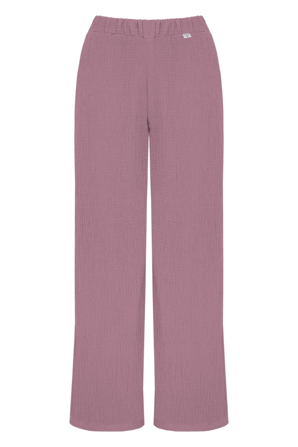 Uszyte z muślinu bawełnianego – oddychającego, miękkiego i przewiewnego materiału o naturalnej teksturze. Nasz muślin posiada certyfikat OEKO-TEX Standard 100, co gwarantuje bezpieczeństwo i najwyższą jakość. Materiał nie kurczy się po praniu, więc Twoje spodnie pozostaną w idealnym rozmiarze przez długi czas.