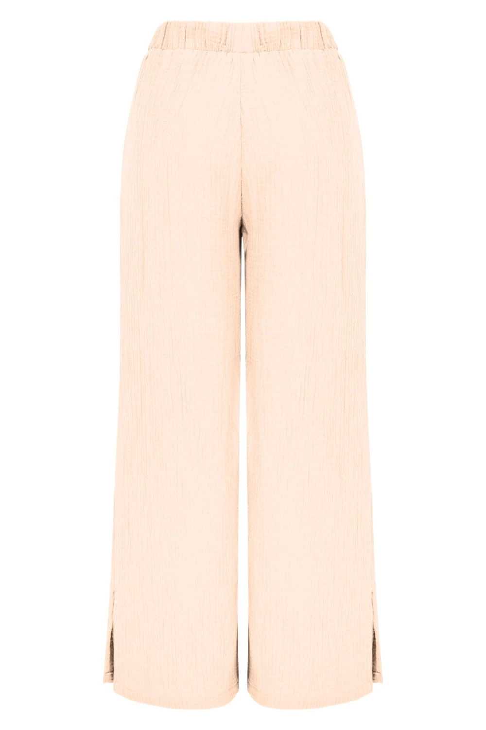 EMILY - Novelle Peach - wygodne spodnie na gumce z szerokimi nogawkami