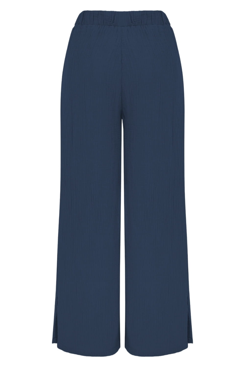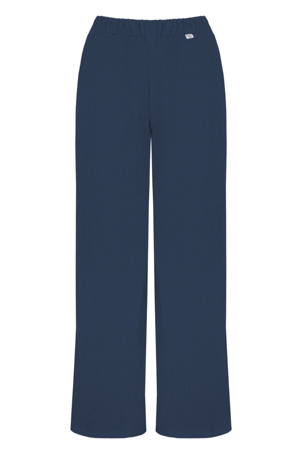 EMILY - Orion Blue - wygodne spodnie na gumce z szerokimi nogawkami