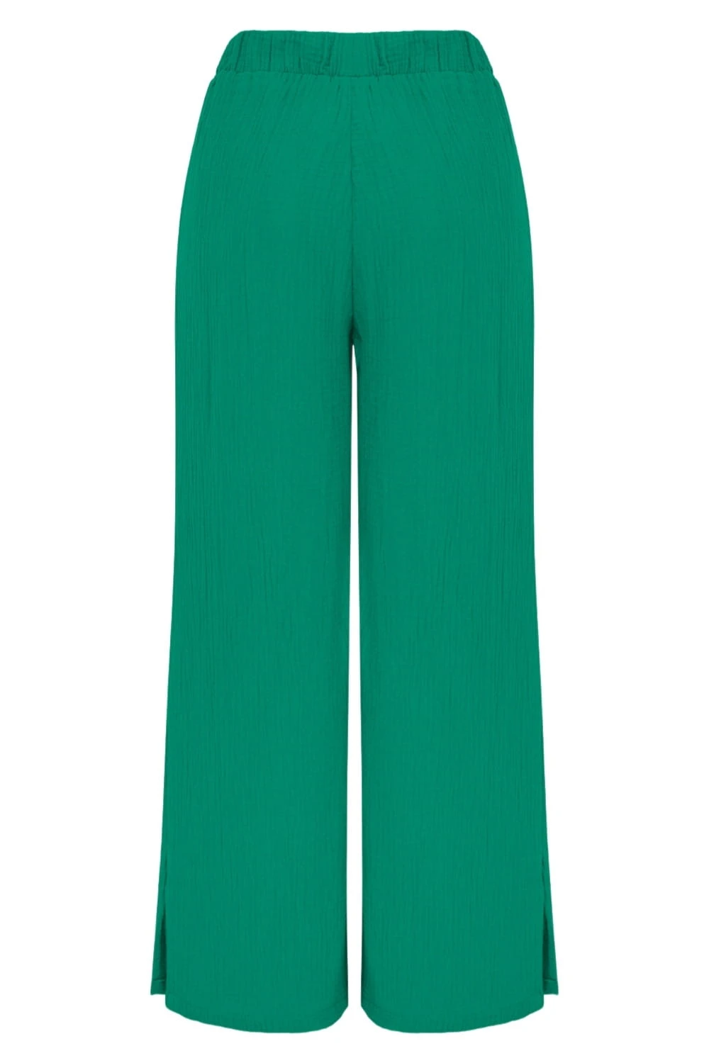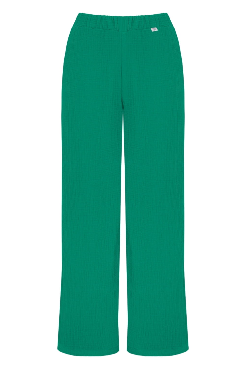 EMILY - Pepper Green - wygodne spodnie na gumce z szerokimi nogawkami