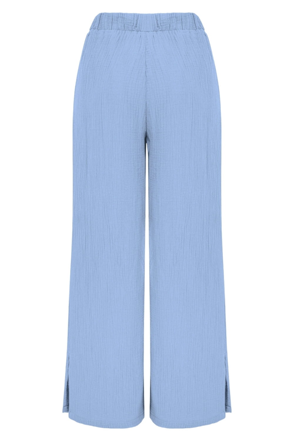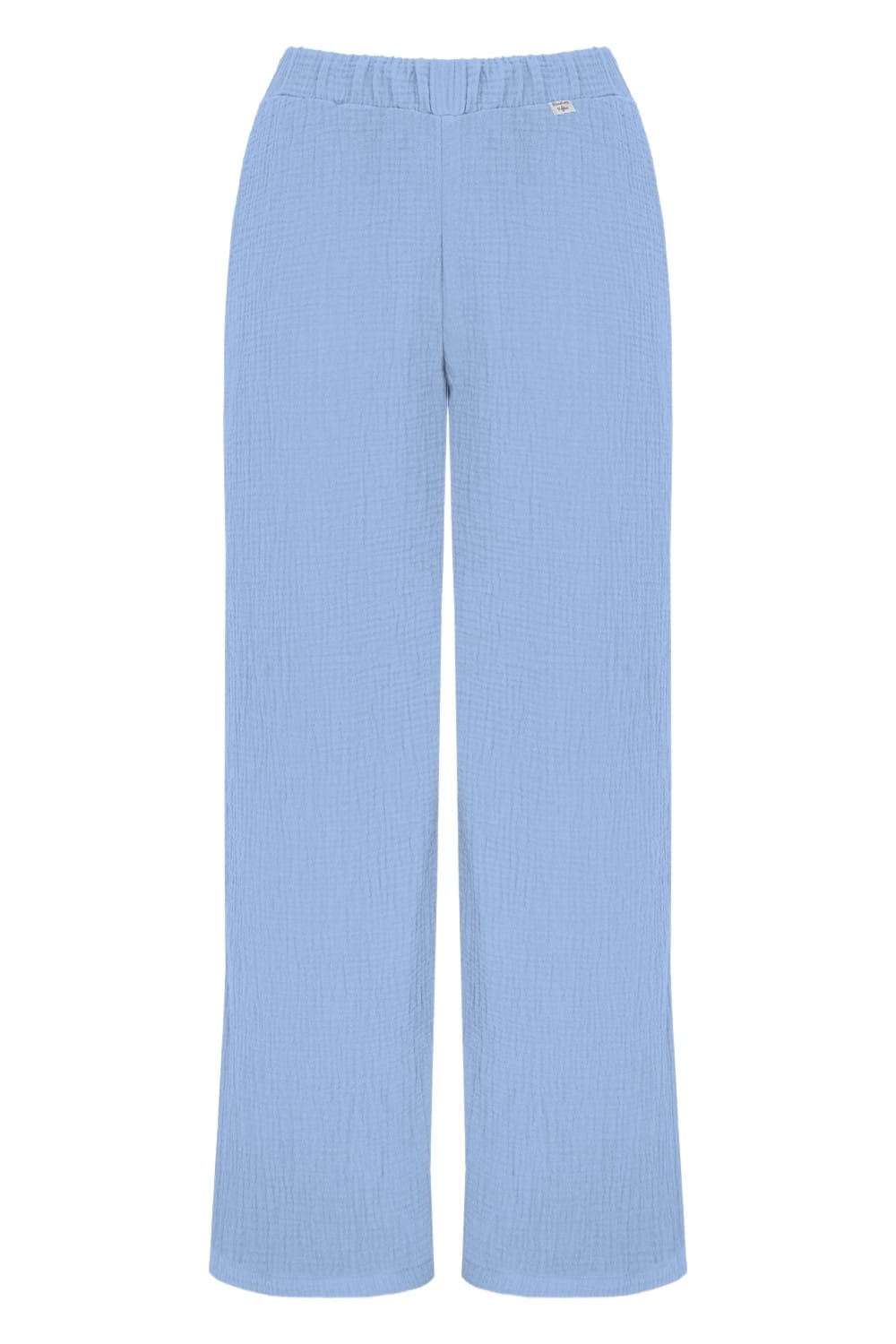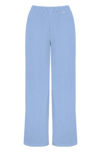 EMILY - Placid Blue - wygodne spodnie na gumce z szerokimi nogawkami