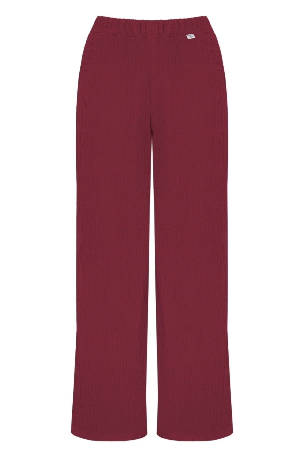 Uszyte z muślinu bawełnianego – oddychającego, miękkiego i przewiewnego materiału o naturalnej teksturze. Nasz muślin posiada certyfikat OEKO-TEX Standard 100, co gwarantuje bezpieczeństwo i najwyższą jakość. Materiał nie kurczy się po praniu, więc Twoje spodnie pozostaną w idealnym rozmiarze przez długi czas.