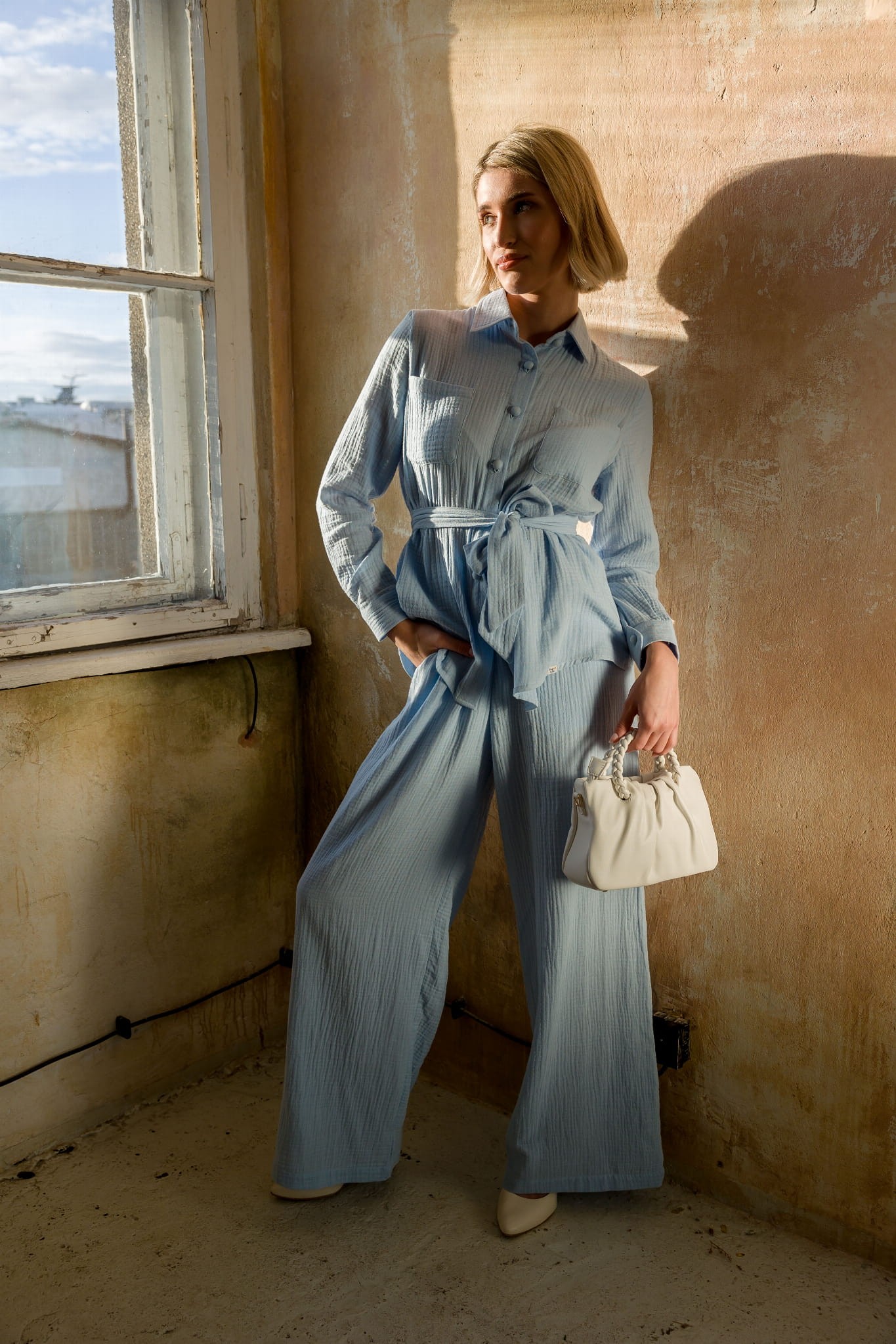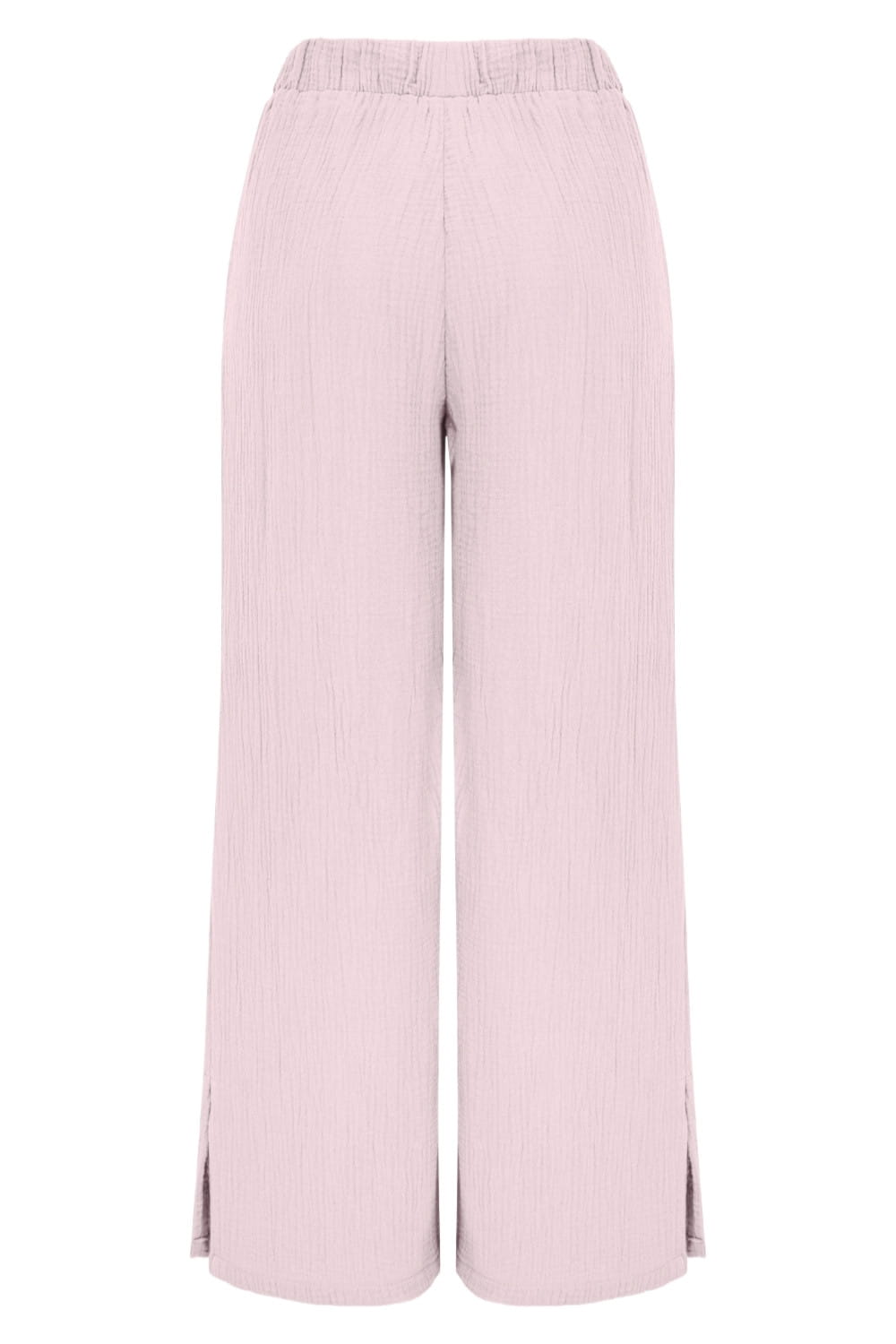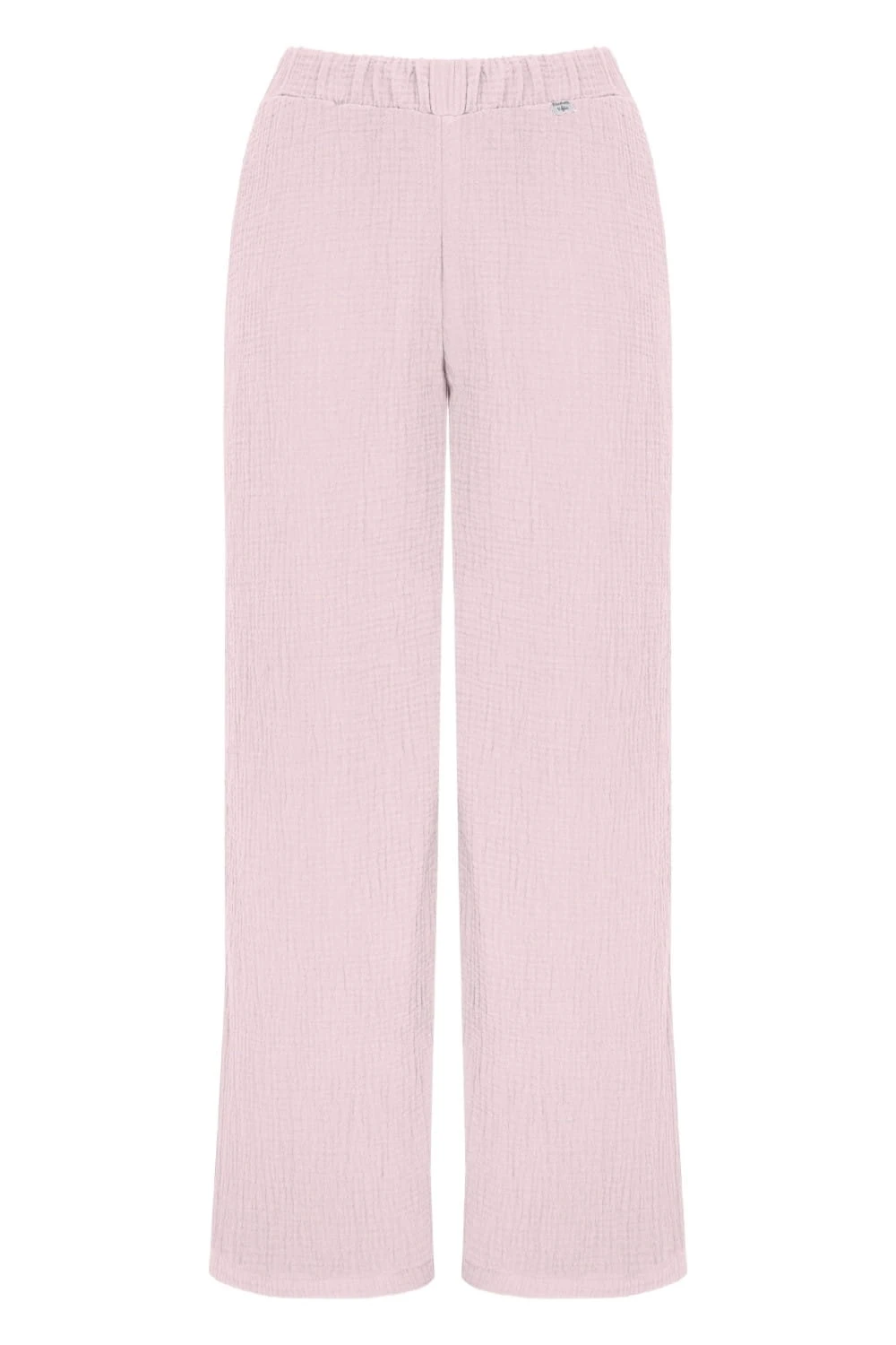 Uszyte z muślinu bawełnianego – oddychającego, miękkiego i przewiewnego materiału o naturalnej teksturze. Nasz muślin posiada certyfikat OEKO-TEX Standard 100, co gwarantuje bezpieczeństwo i najwyższą jakość. Materiał nie kurczy się po praniu, więc Twoje spodnie pozostaną w idealnym rozmiarze przez długi czas.