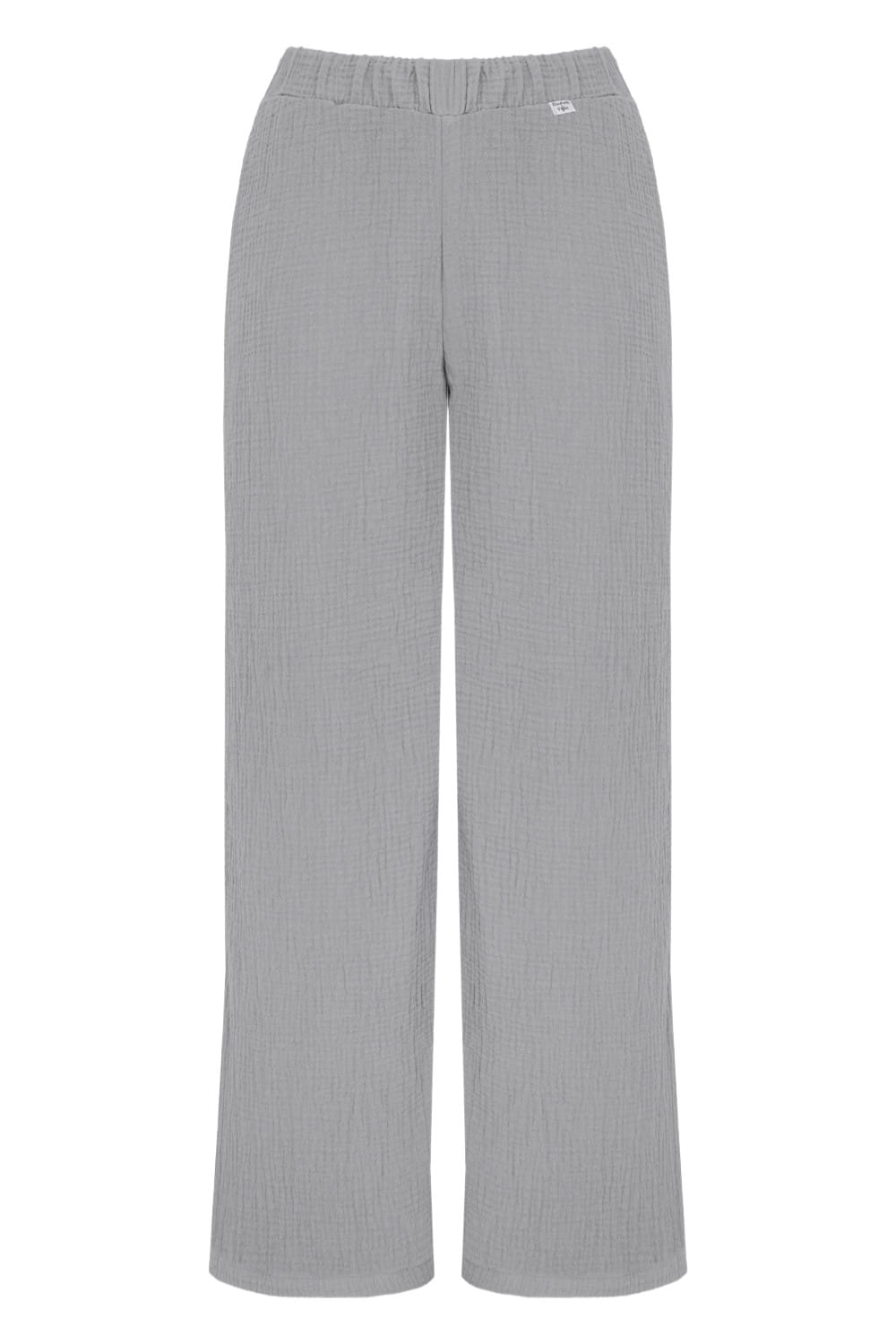 Uszyte z muślinu bawełnianego – oddychającego, miękkiego i przewiewnego materiału o naturalnej teksturze. Nasz muślin posiada certyfikat OEKO-TEX Standard 100, co gwarantuje bezpieczeństwo i najwyższą jakość. Materiał nie kurczy się po praniu, więc Twoje spodnie pozostaną w idealnym rozmiarze przez długi czas.