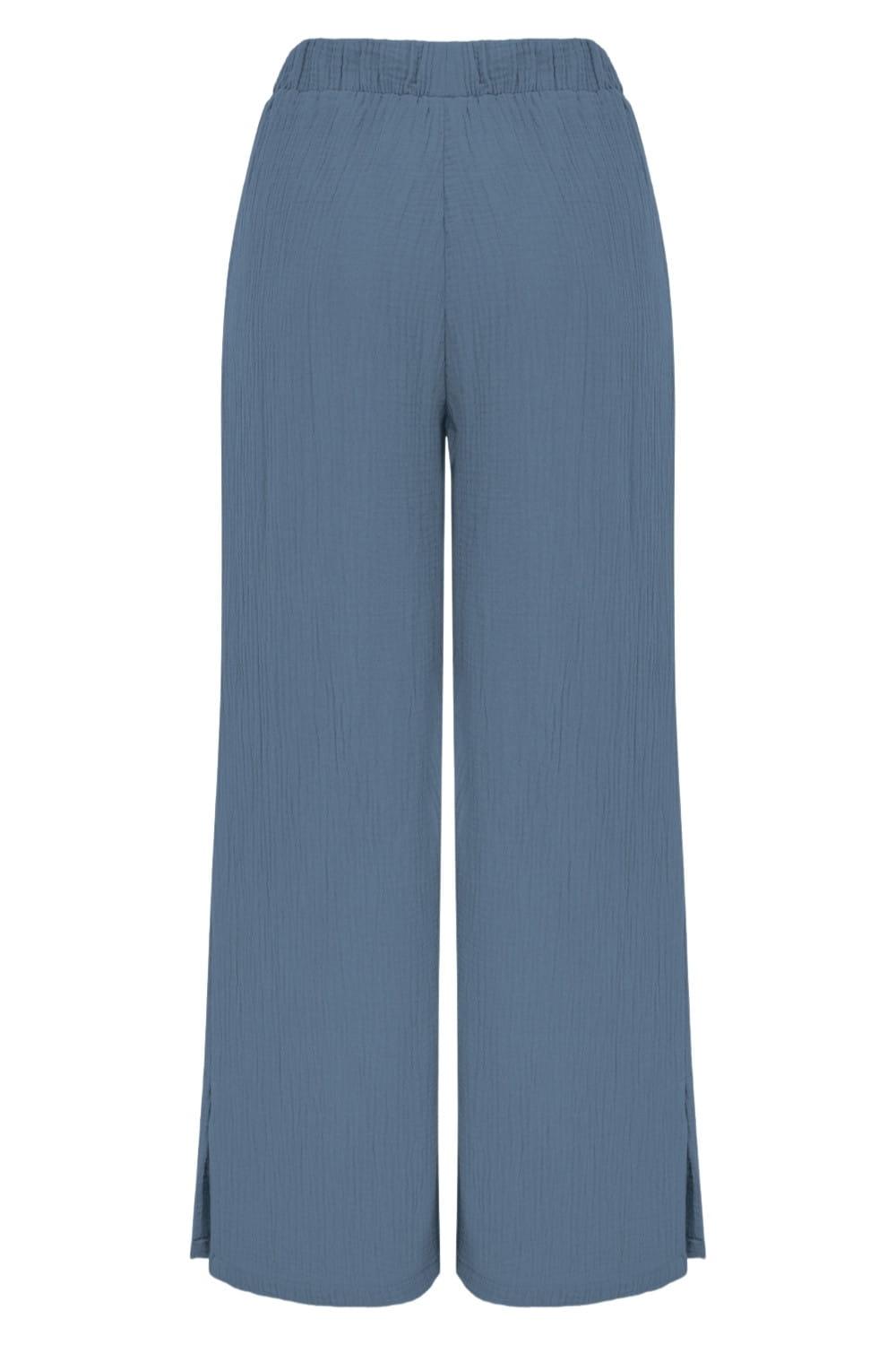 Emily – Spodnie z wysokim stanem i szerokimi nogawkami z rozcięciem