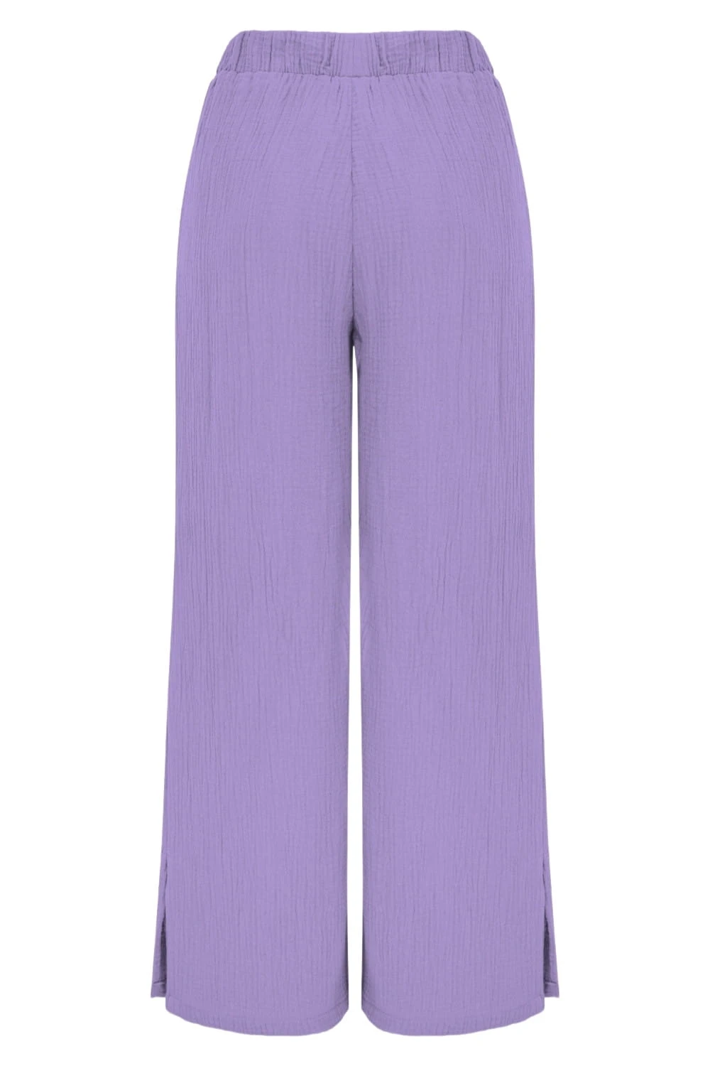 EMILY - Viola - wygodne spodnie na gumce z szerokimi nogawkami