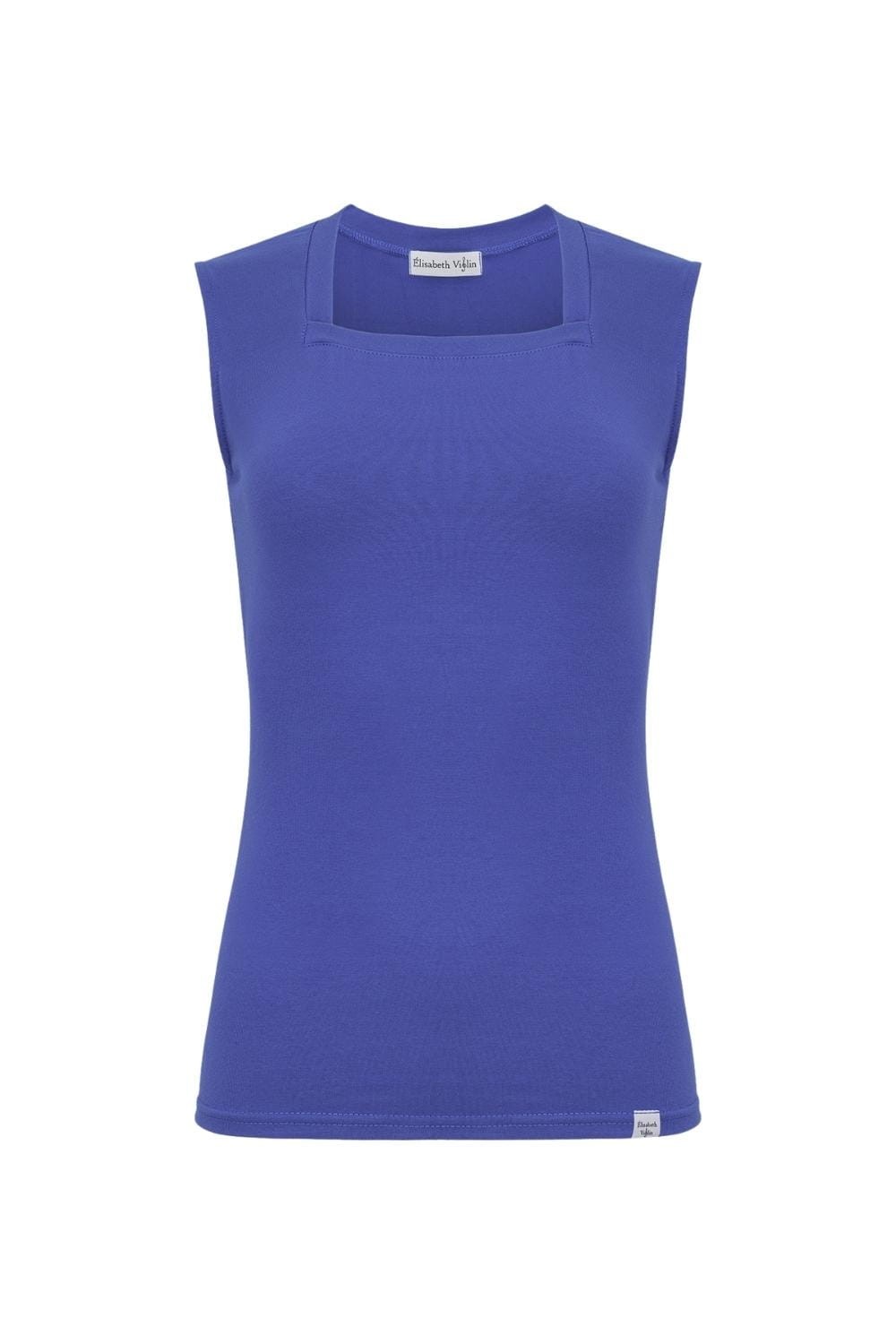 ERICA – Amparo Blue - WISKOZA – taliowana bluzka z kwadratowym dekoltem bez rękawków