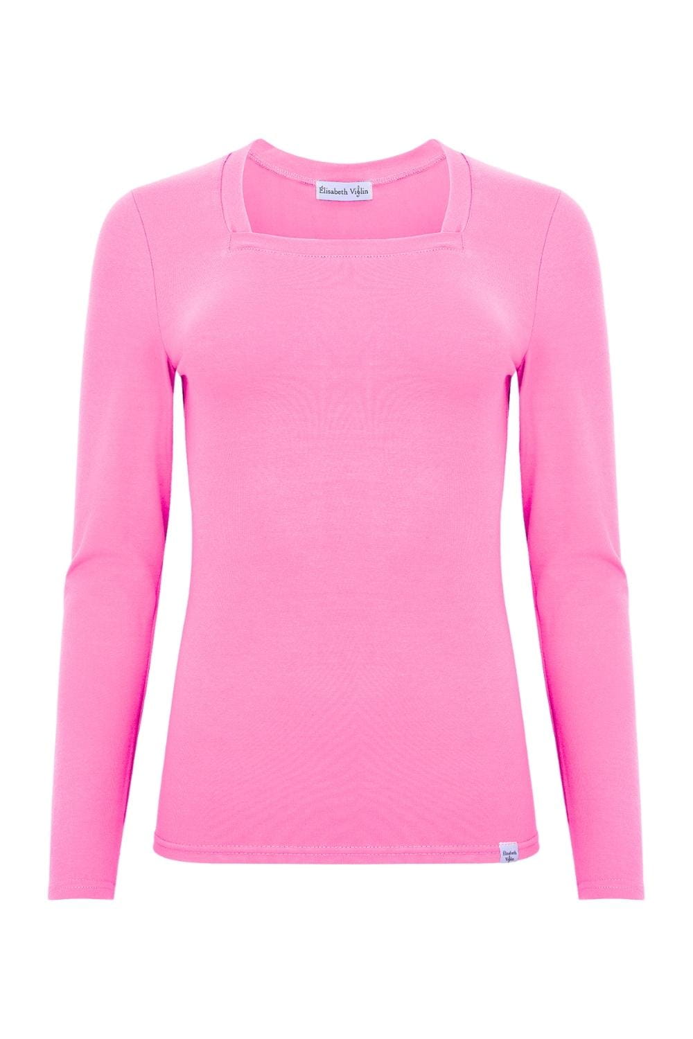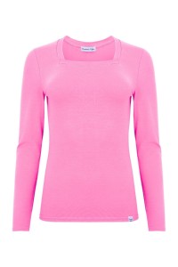 ERICA – Aurora Pink - BAMBUS – taliowana bluzka z kwadratowym dekoltem i klasycznymi długimi rękawami