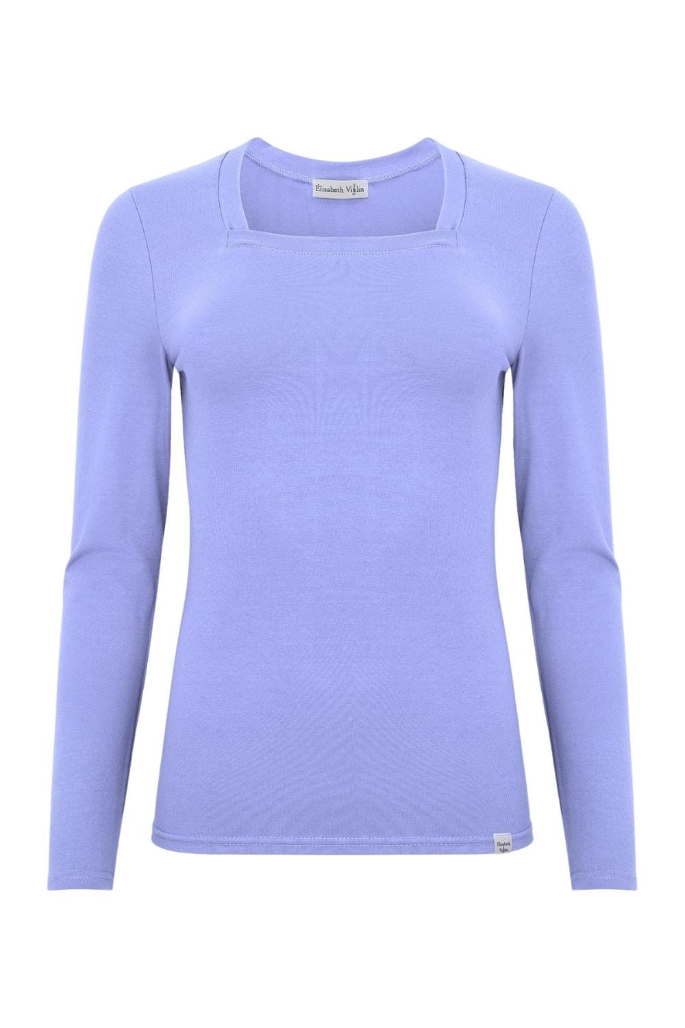ERICA – Blue Bonnet - BAMBUS – taliowana bluzka z kwadratowym dekoltem i klasycznymi długimi rękawami