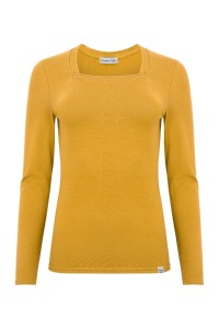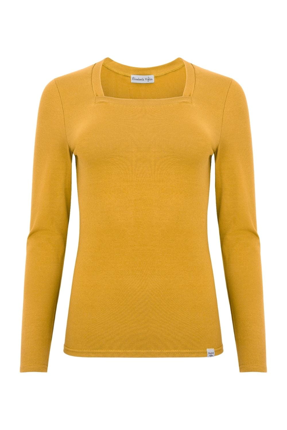 ERICA – Bright Gold - BAMBUS – taliowana bluzka z kwadratowym dekoltem i klasycznymi długimi rękawami