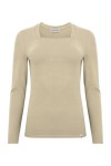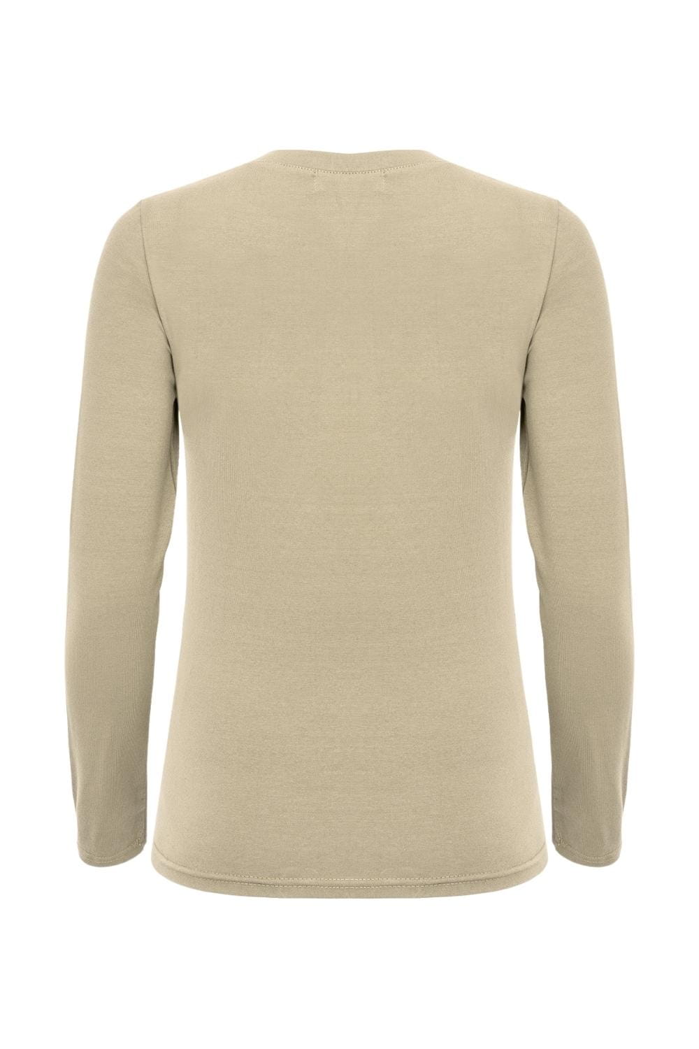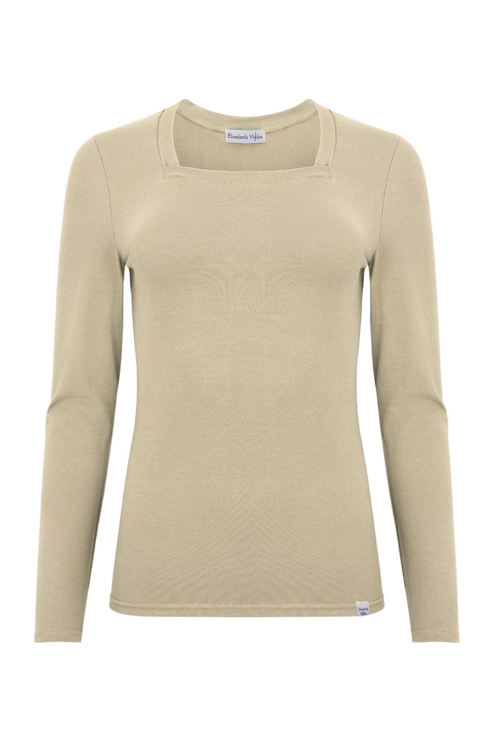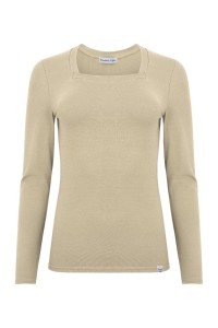ERICA – Brown Rice - BAMBUS – taliowana bluzka z kwadratowym dekoltem i klasycznymi długimi rękawami