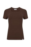 ERICA – Chestnut - WISKOZA – taliowana bluzka z kwadratowym dekoltem i klasycznymi krótkimi rękawami