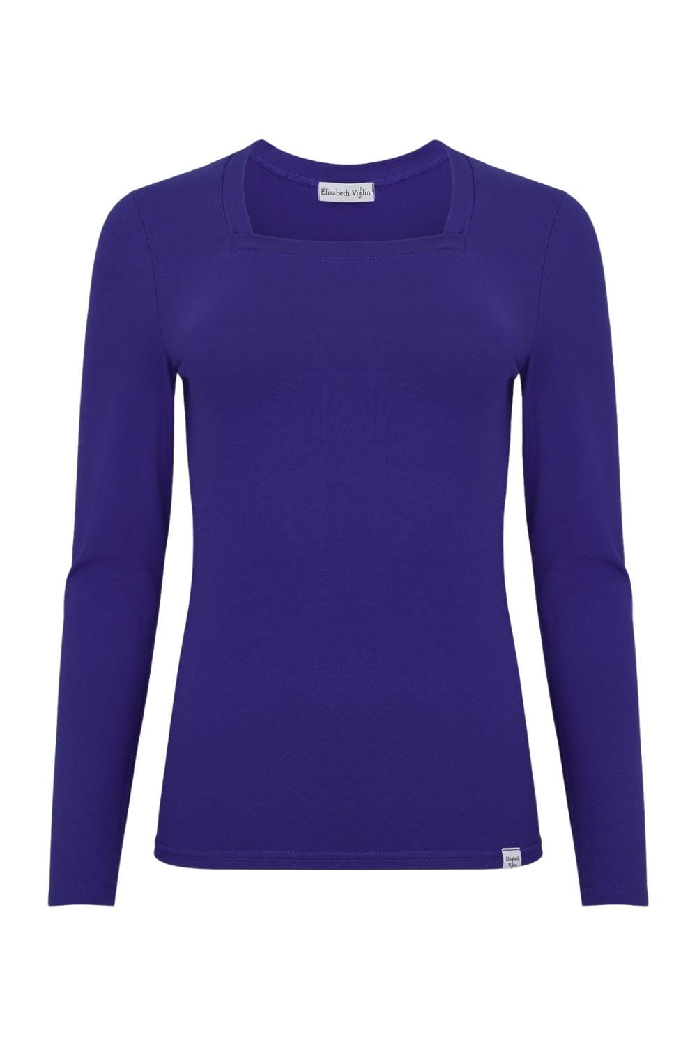 ERICA – Clematis Blue - BAMBUS – taliowana bluzka z kwadratowym dekoltem i klasycznymi długimi rękawami