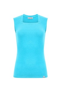 ERICA – Cyan Blue - WISKOZA – taliowana bluzka z kwadratowym dekoltem bez rękawków