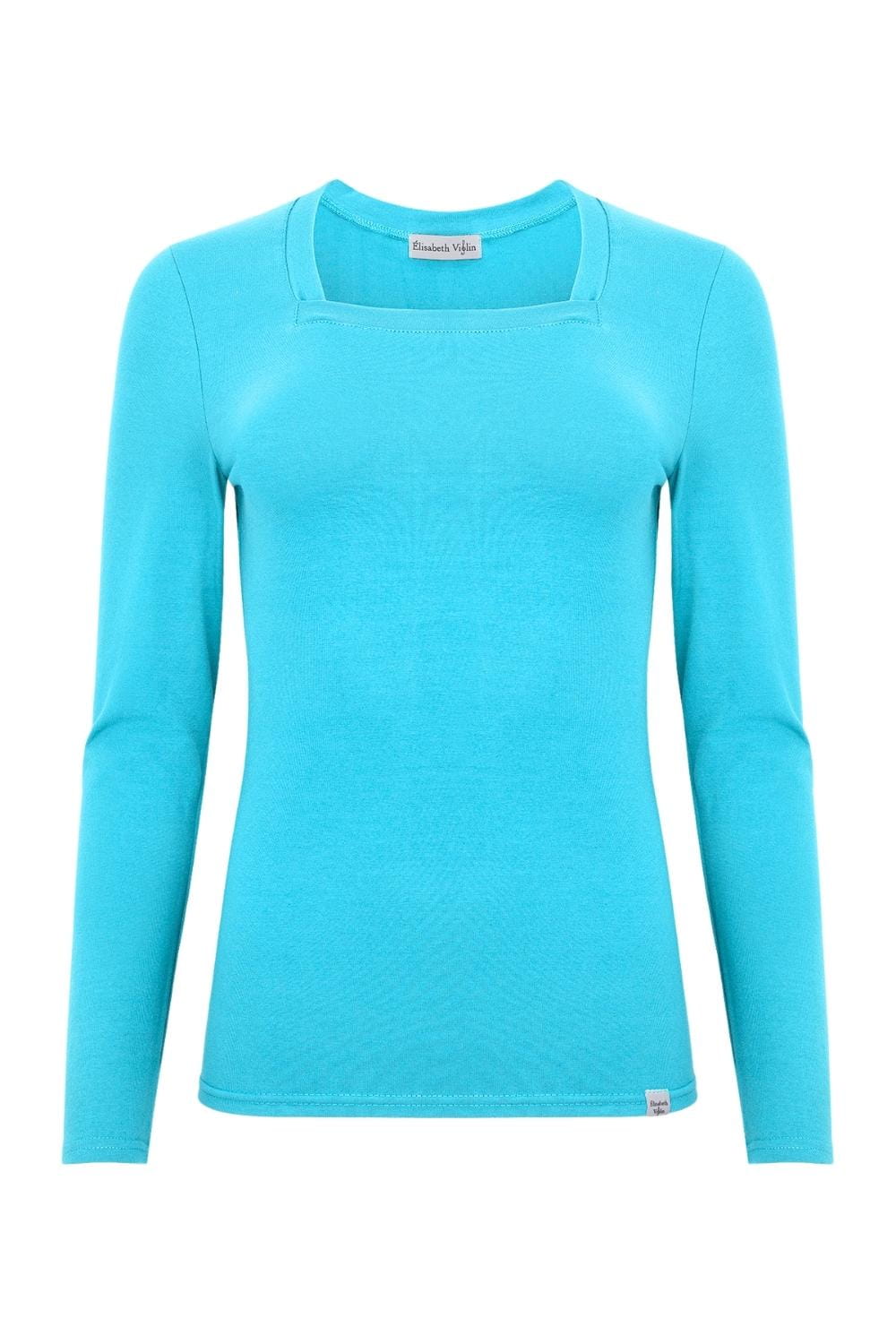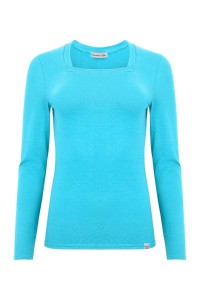 ERICA – Cyan Blue - WISKOZA – taliowana bluzka z kwadratowym dekoltem i klasycznymi długimi rękawami