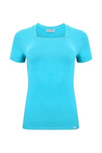 ERICA – Cyan Blue - WISKOZA – taliowana bluzka z kwadratowym dekoltem i klasycznymi krótkimi rękawami
