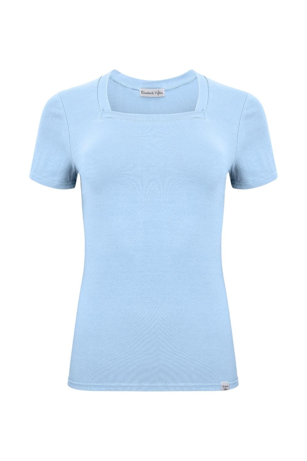 ERICA – Dusk Blue - WISKOZA – taliowana bluzka z kwadratowym dekoltem i klasycznymi krótkimi rękawami