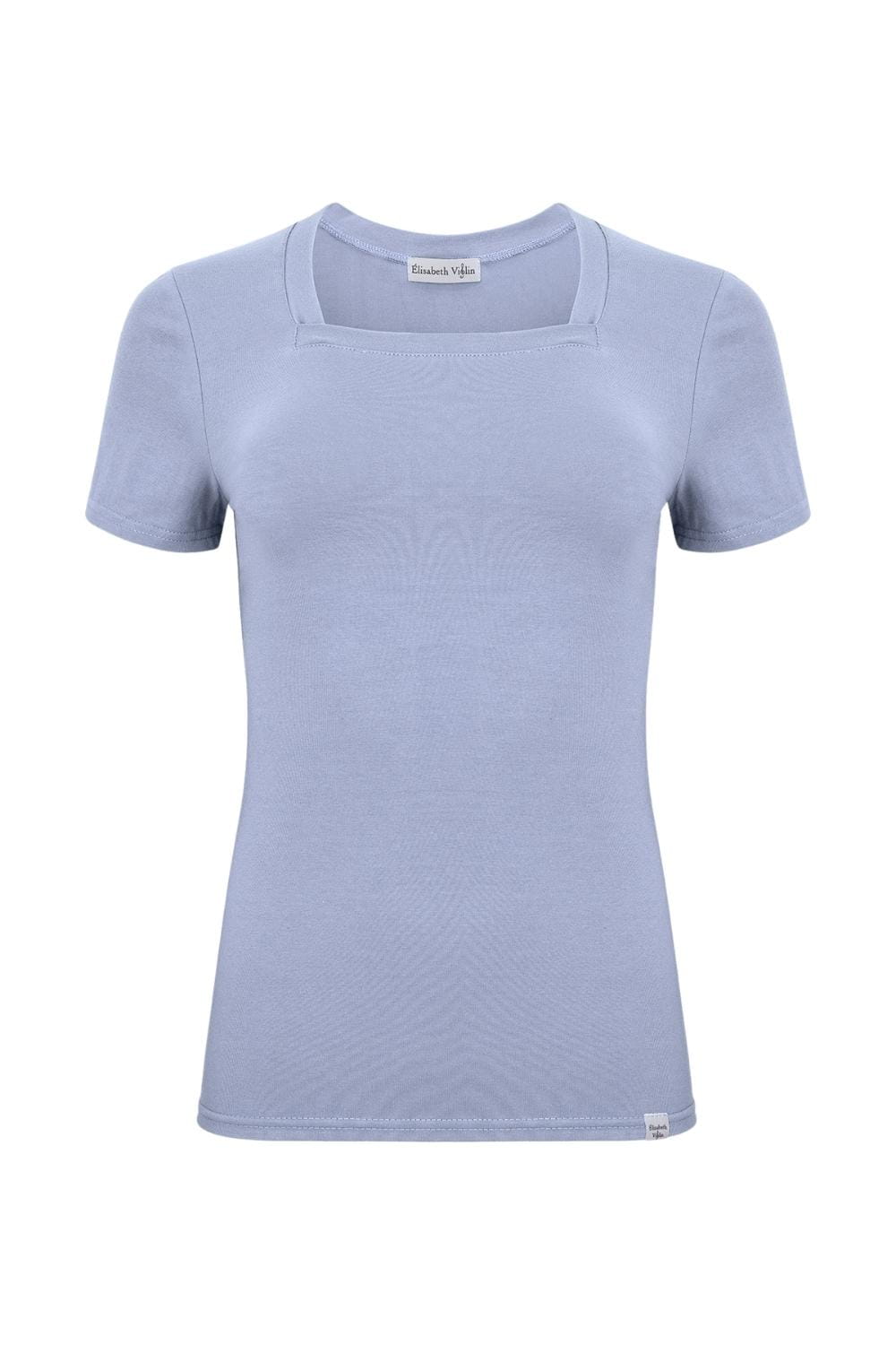 ERICA – Faded Denim - WISKOZA – taliowana bluzka z kwadratowym dekoltem i klasycznymi krótkimi rękawami