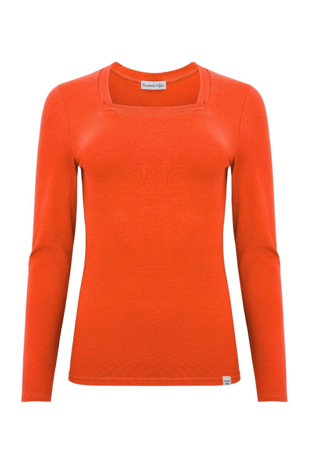 ERICA – Flame Scarlet - WISKOZA – taliowana bluzka z kwadratowym dekoltem i klasycznymi długimi rękawami