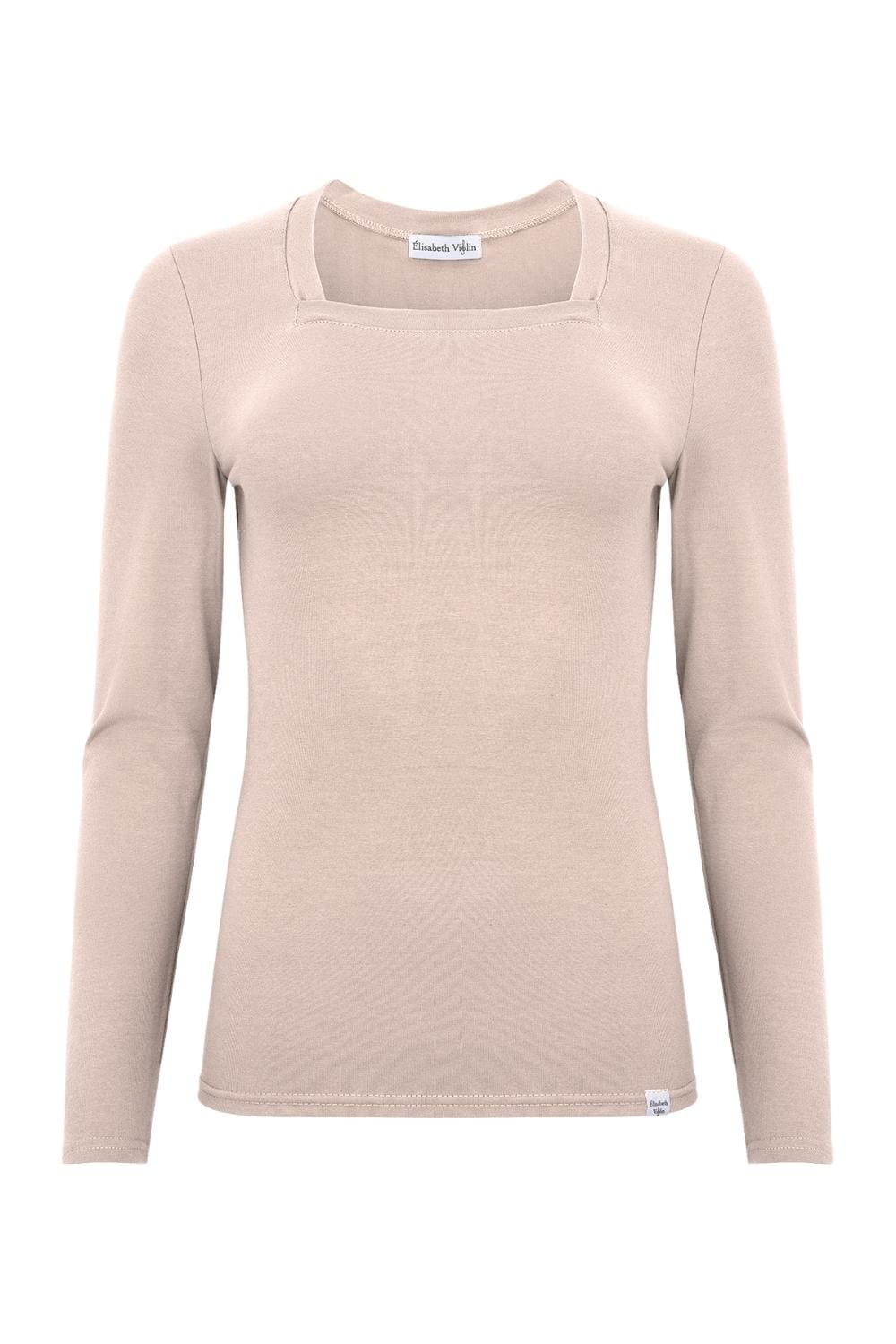 ERICA – Gray Morn - BAWEŁNA GŁADKA – taliowana bluzka z kwadratowym dekoltem i klasycznymi długimi rękawami