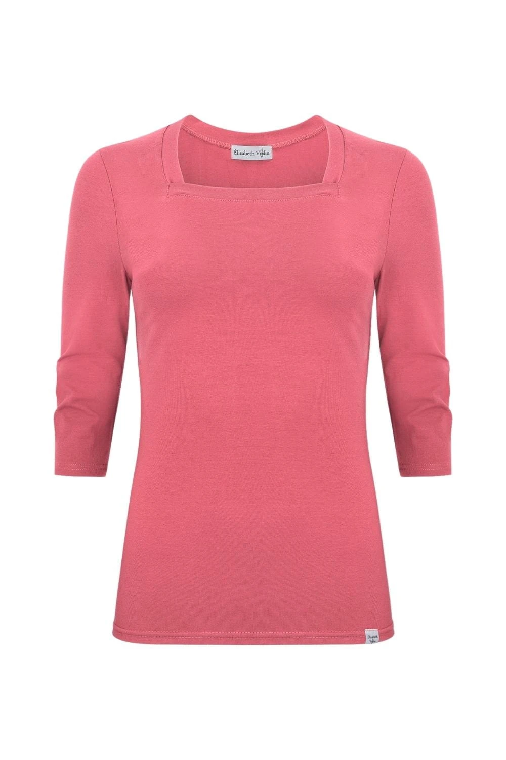 ERICA – Holly Berry - BAMBUS – taliowana bluzka z kwadratowym dekoltem i klasycznymi rękawami 3/4