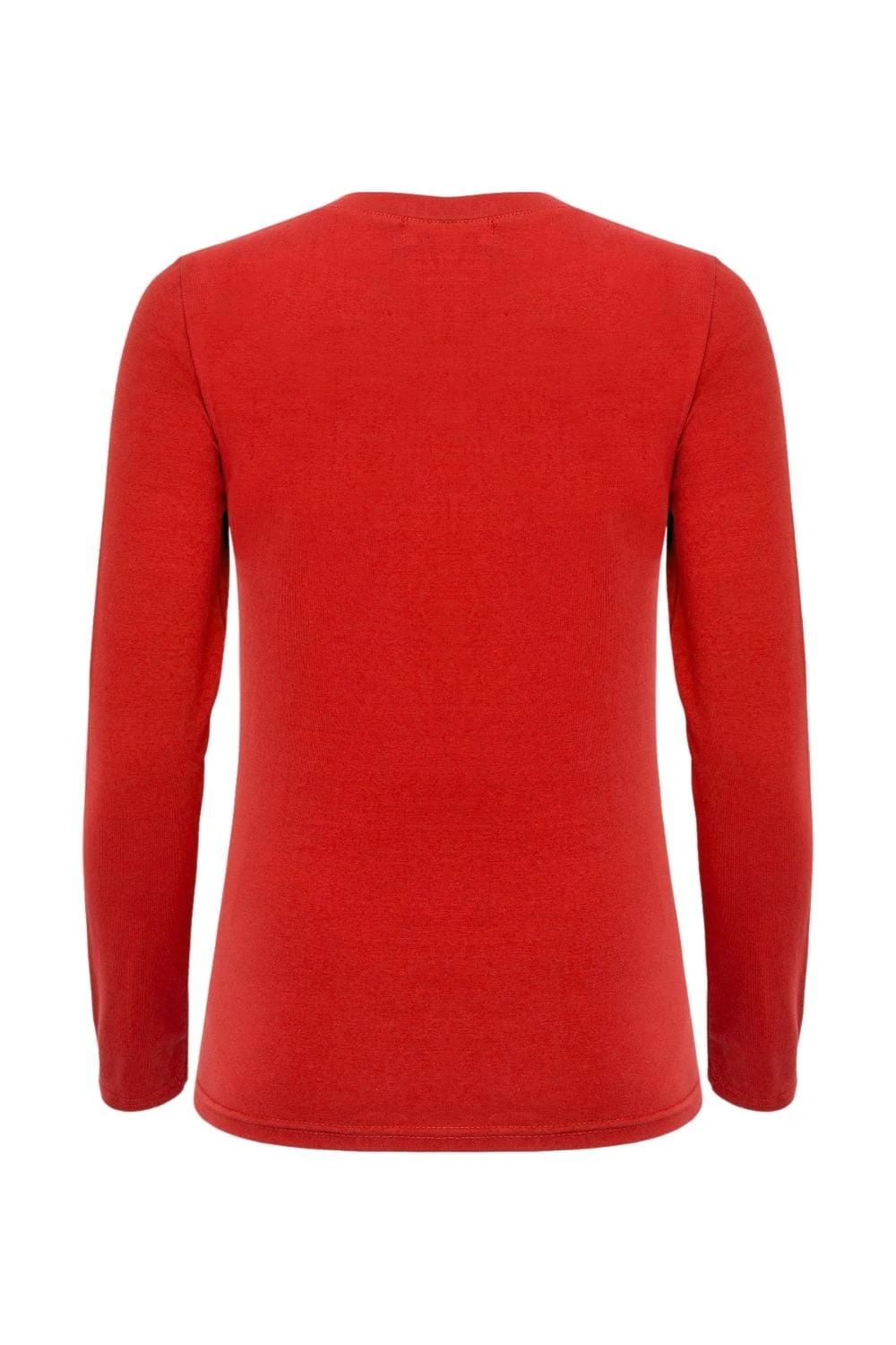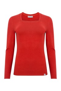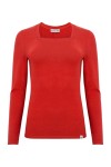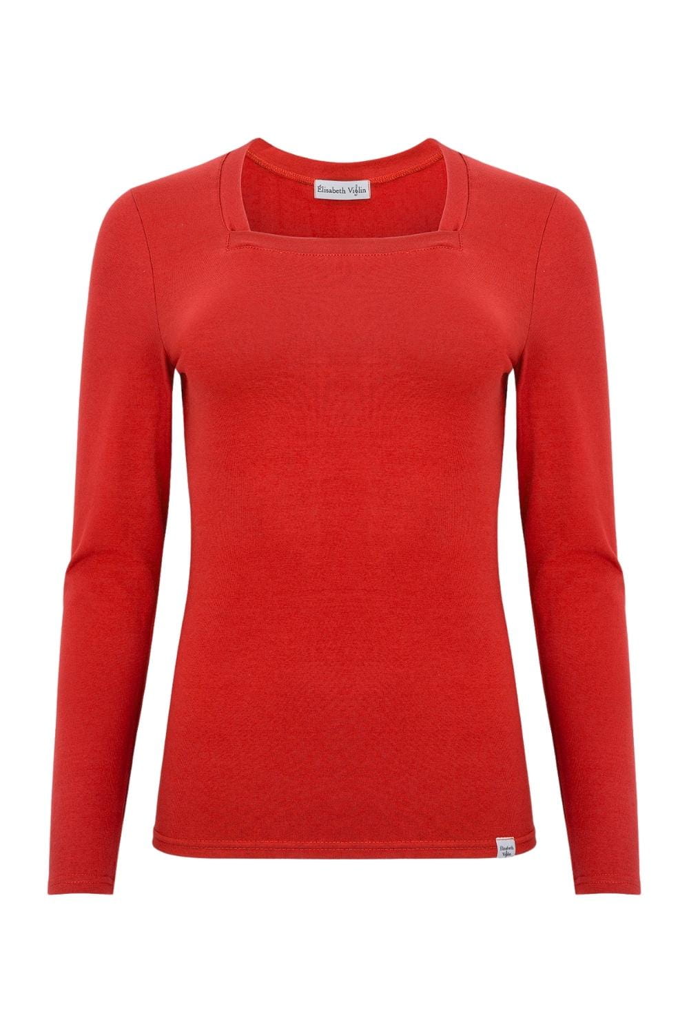 ERICA – Mars Red - BAWEŁNA GŁADKA – taliowana bluzka z kwadratowym dekoltem i klasycznymi długimi rękawami