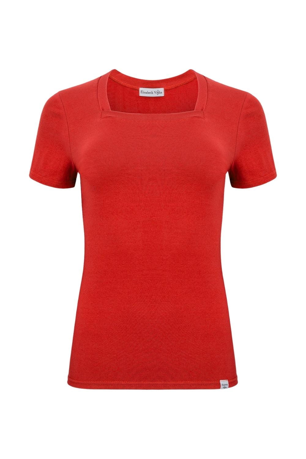 ERICA – Mars Red - BAWEŁNA GŁADKA – taliowana bluzka z kwadratowym dekoltem i klasycznymi krótkimi rękawami
