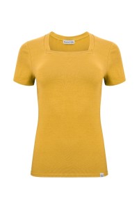 ERICA – Mineral Yellow - BAWEŁNA GŁADKA – taliowana bluzka z kwadratowym dekoltem i klasycznymi krótkimi rękawami