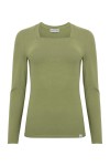 ERICA – Oil Green - BAMBUS – taliowana bluzka z kwadratowym dekoltem i klasycznymi długimi rękawami