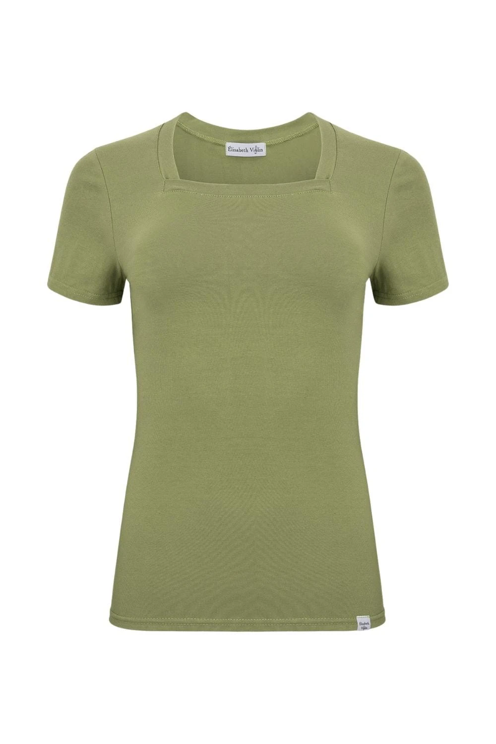 ERICA – Oil Green - BAMBUS – taliowana bluzka z kwadratowym dekoltem i klasycznymi krótkimi rękawami