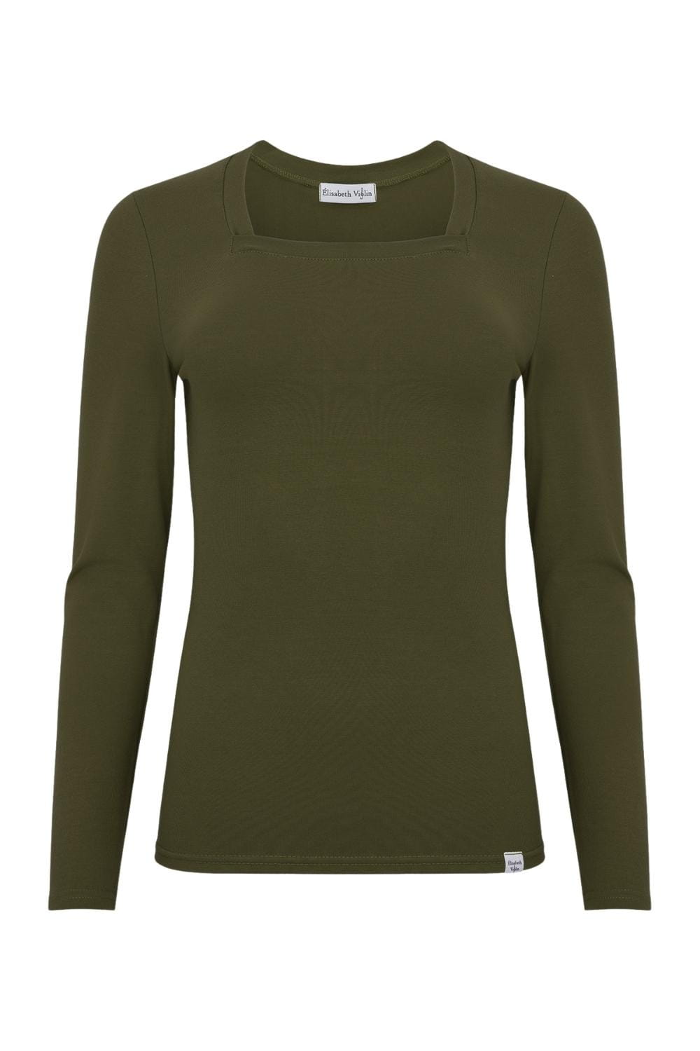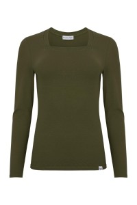 ERICA – Olive Night - WISKOZA – taliowana bluzka z kwadratowym dekoltem i klasycznymi długimi rękawami