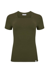 ERICA – Olive Night - WISKOZA – taliowana bluzka z kwadratowym dekoltem i klasycznymi krótkimi rękawami