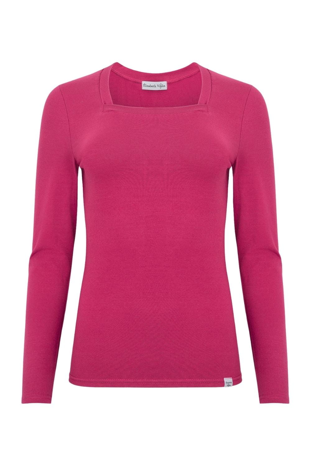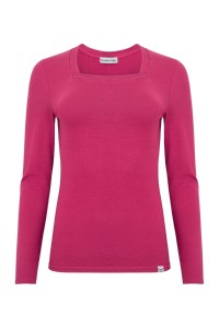 ERICA – Pink Peacock - BAWEŁNA GŁADKA – taliowana bluzka z kwadratowym dekoltem i klasycznymi długimi rękawami
