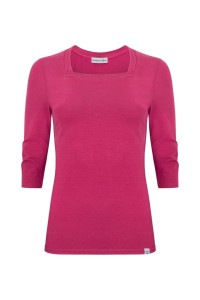 ERICA – Pink Peacock - BAWEŁNA GŁADKA – taliowana bluzka z kwadratowym dekoltem i klasycznymi rękawami 3/4