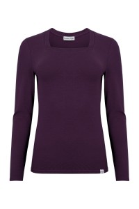 ERICA – Plum Purple - BAMBUS – taliowana bluzka z kwadratowym dekoltem i klasycznymi długimi rękawami