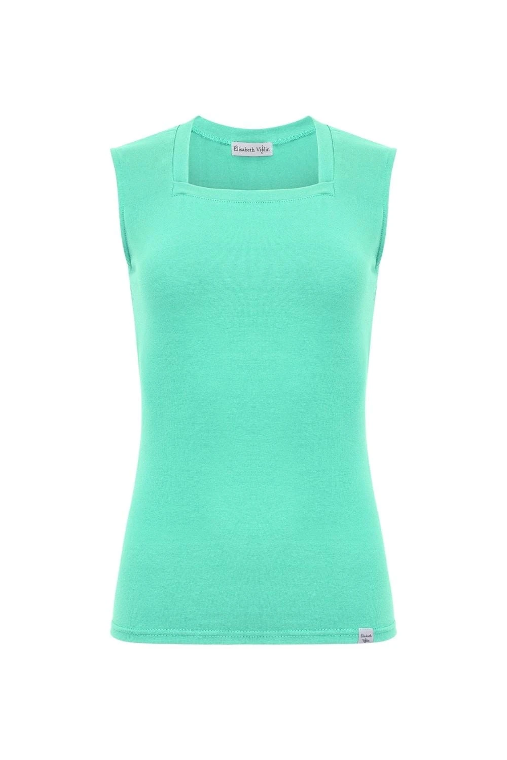 ERICA – Pool Blue - BAWEŁNA GŁADKA – taliowana bluzka z kwadratowym dekoltem bez rękawków