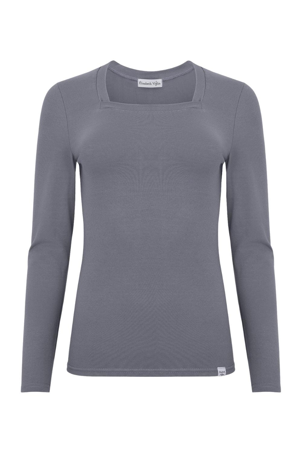 ERICA – Quiet Shade - BAMBUS – taliowana bluzka z kwadratowym dekoltem i klasycznymi długimi rękawami