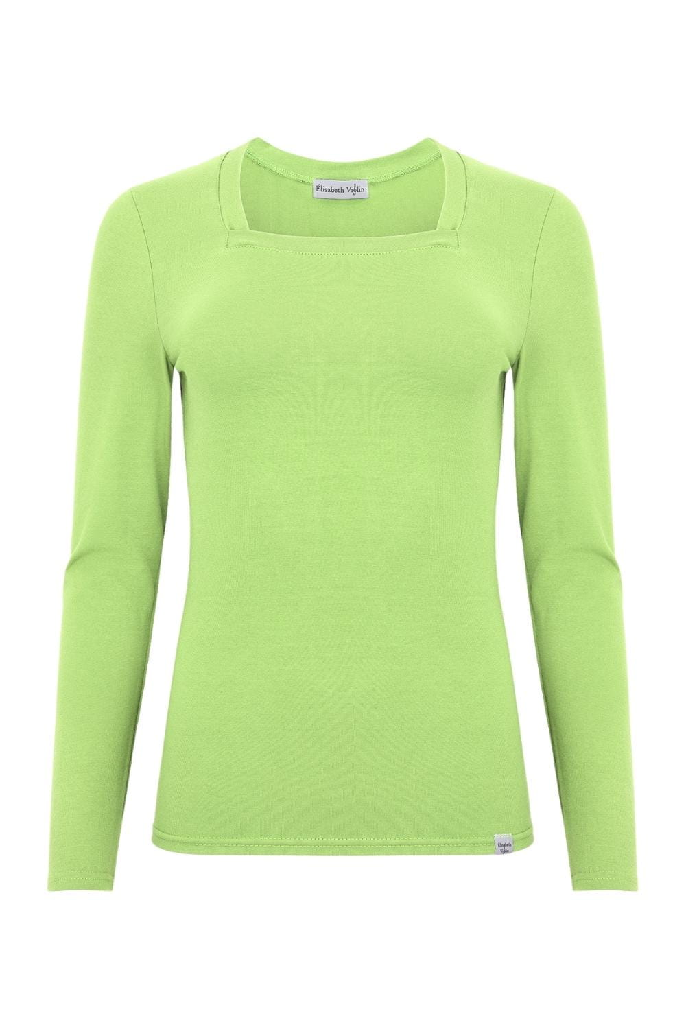 ERICA – Sap Green - WISKOZA – taliowana bluzka z kwadratowym dekoltem i klasycznymi długimi rękawami