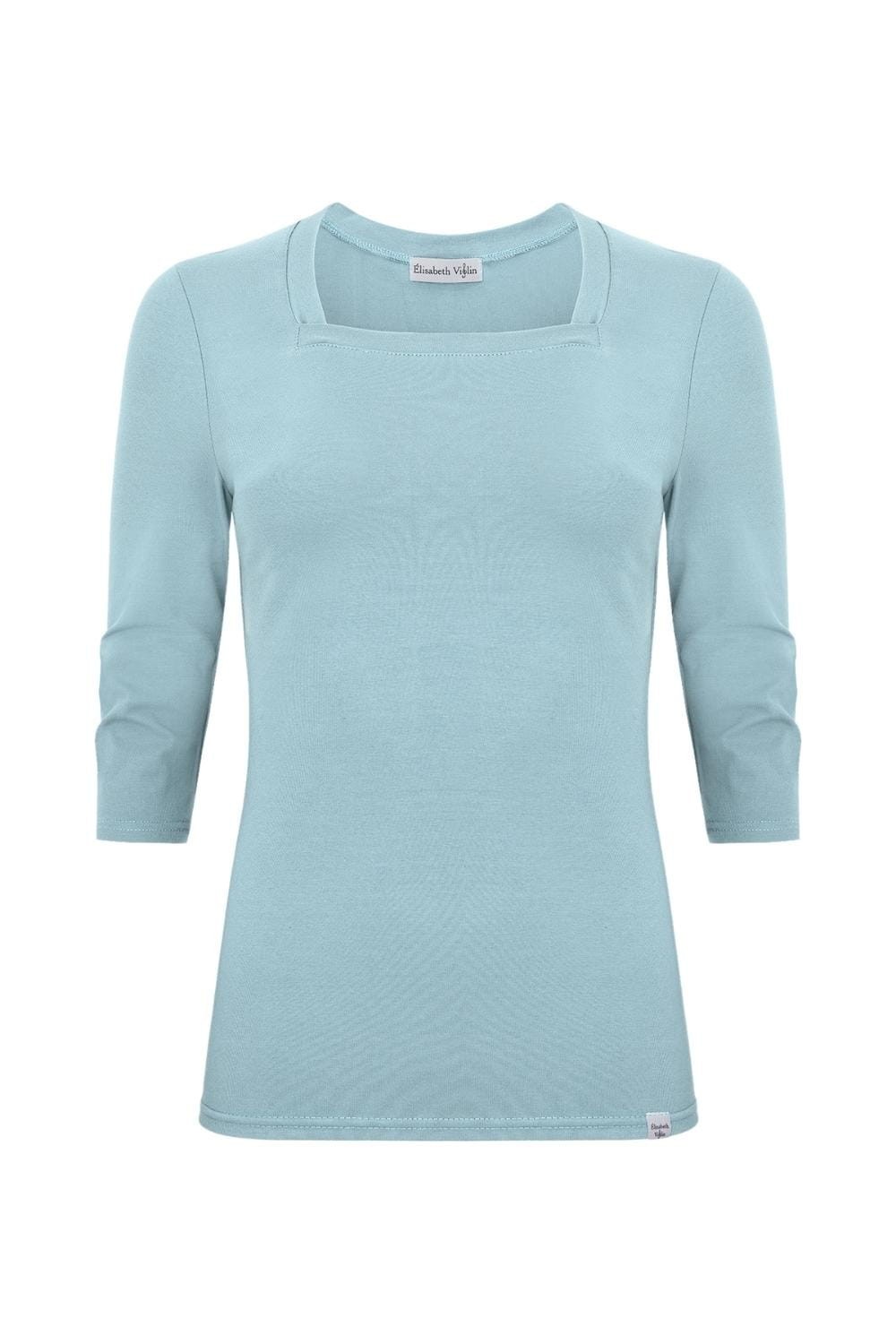 ERICA – Sea Angel - BAWEŁNA GŁADKA – taliowana bluzka z kwadratowym dekoltem i klasycznymi rękawami 3/4