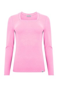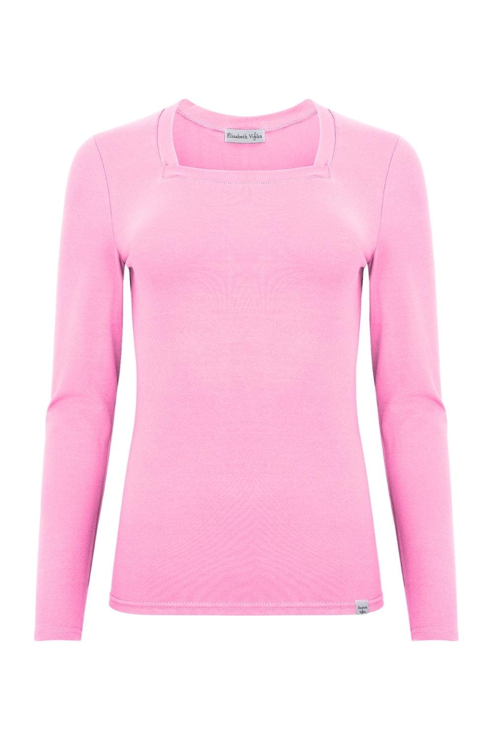 ERICA – Sea Pink - WISKOZA – taliowana bluzka z kwadratowym dekoltem i klasycznymi długimi rękawami