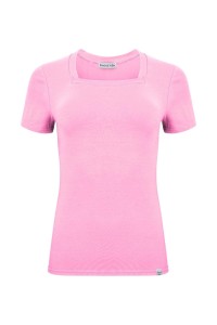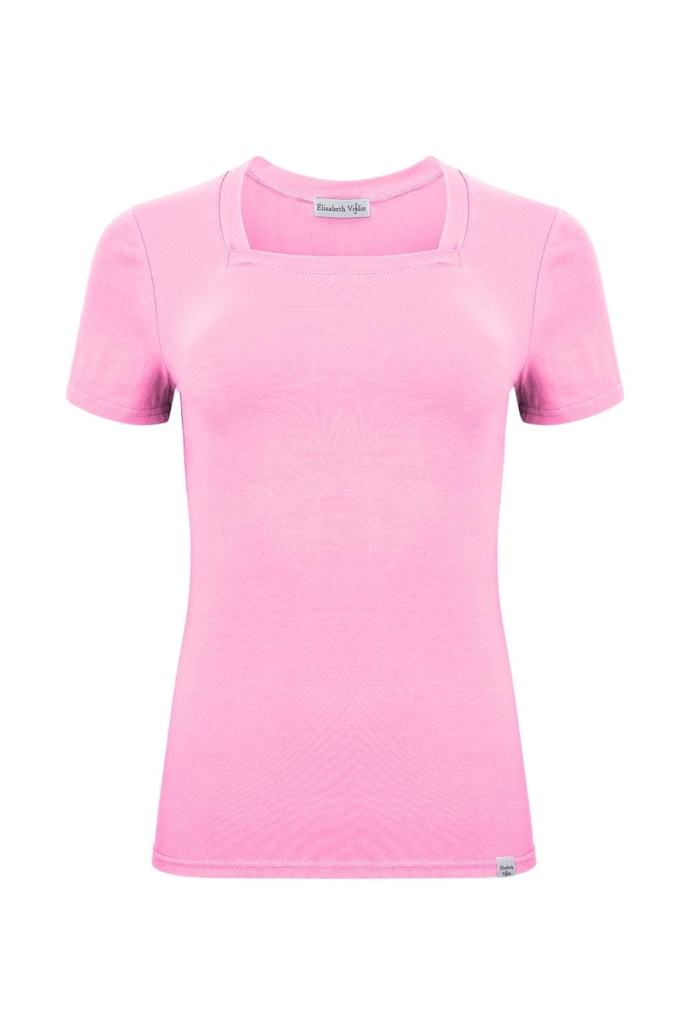 ERICA – Sea Pink - WISKOZA – taliowana bluzka z kwadratowym dekoltem i klasycznymi krótkimi rękawami