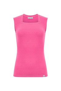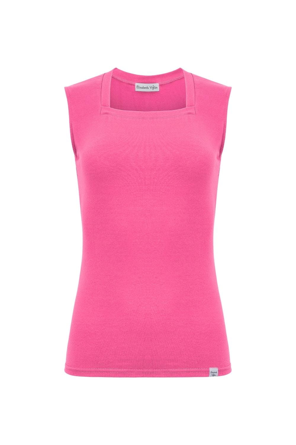 ERICA – Shocking Pink - BAWEŁNA GŁADKA – taliowana bluzka z kwadratowym dekoltem bez rękawków