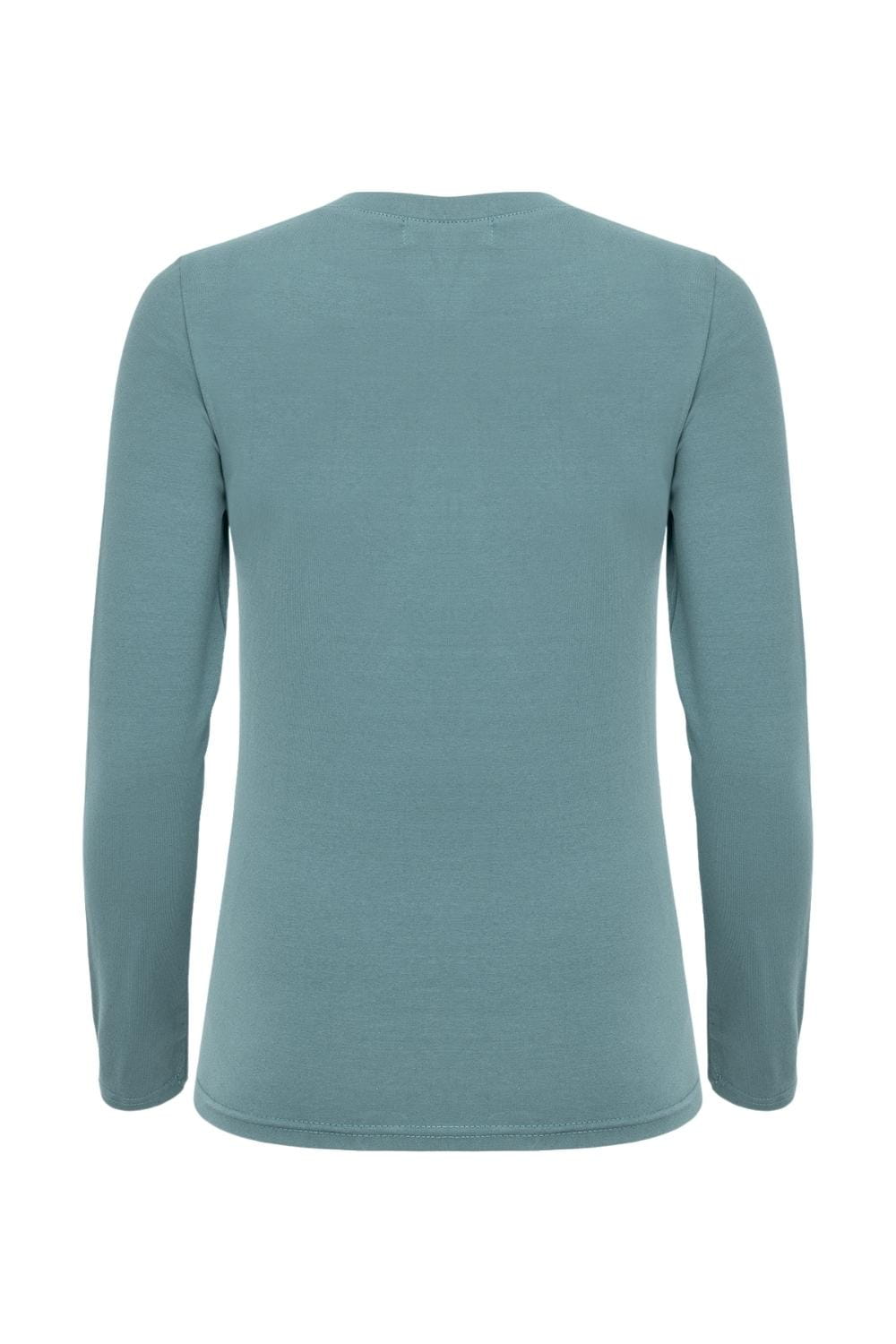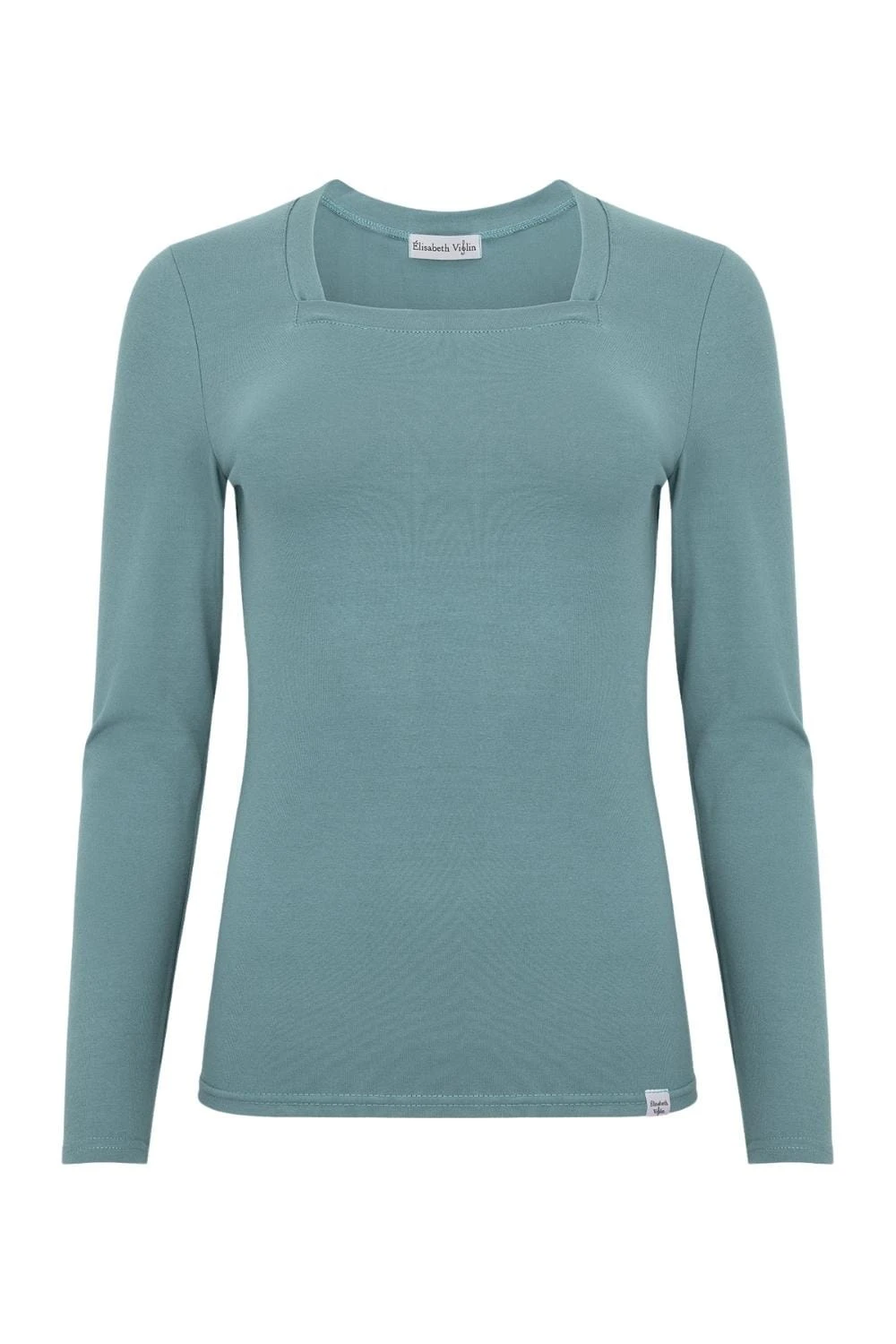 ERICA – Smoke Blue - BAWEŁNA GŁADKA – taliowana bluzka z kwadratowym dekoltem i klasycznymi długimi rękawami