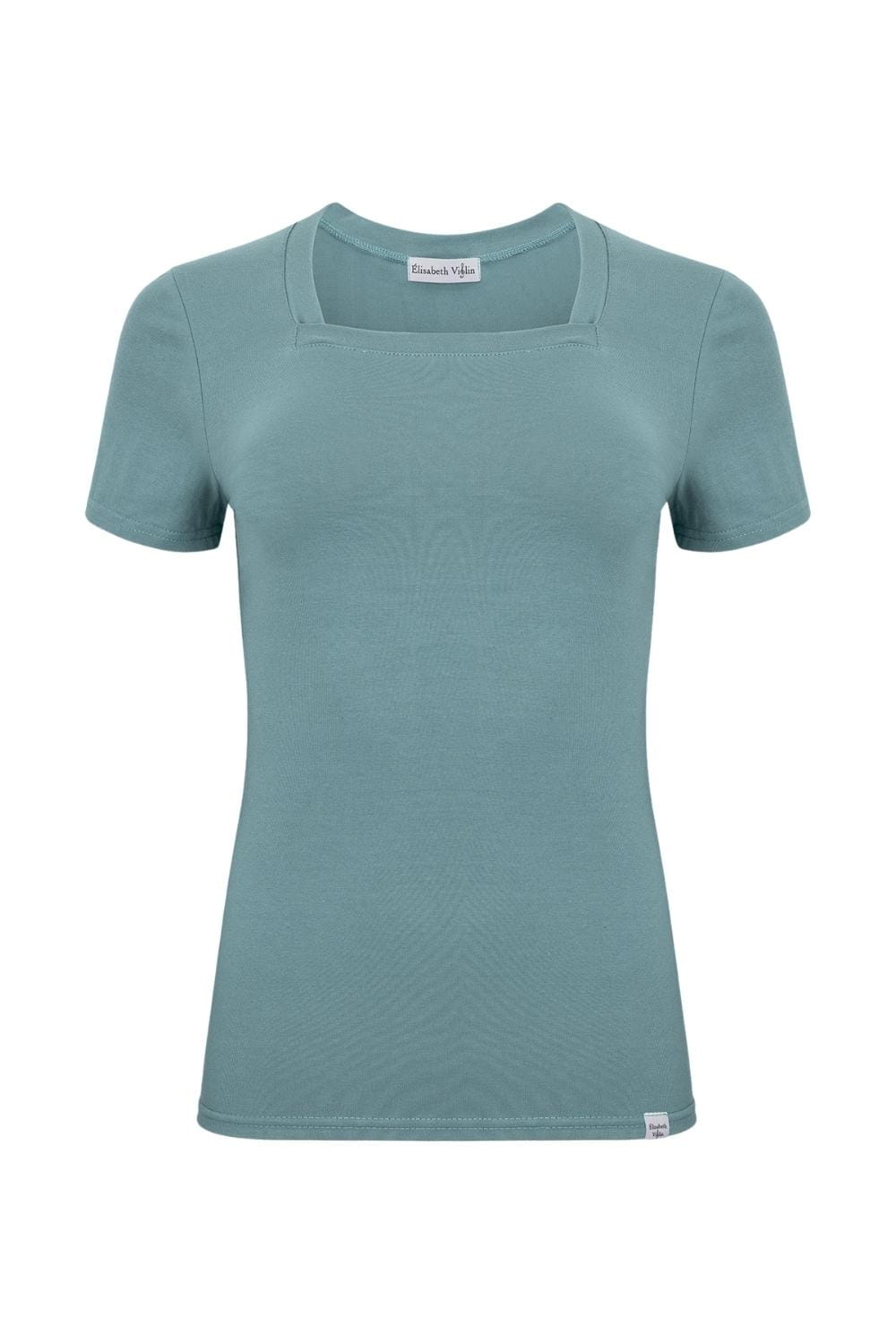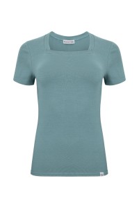 ERICA – Smoke Blue - BAWEŁNA GŁADKA – taliowana bluzka z kwadratowym dekoltem i klasycznymi krótkimi rękawami