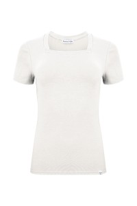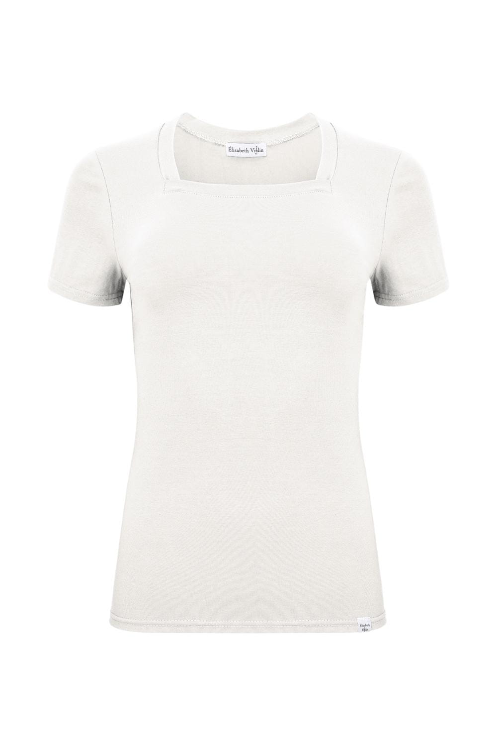 ERICA – Star White - BAMBUS – taliowana bluzka z kwadratowym dekoltem i klasycznymi krótkimi rękawami