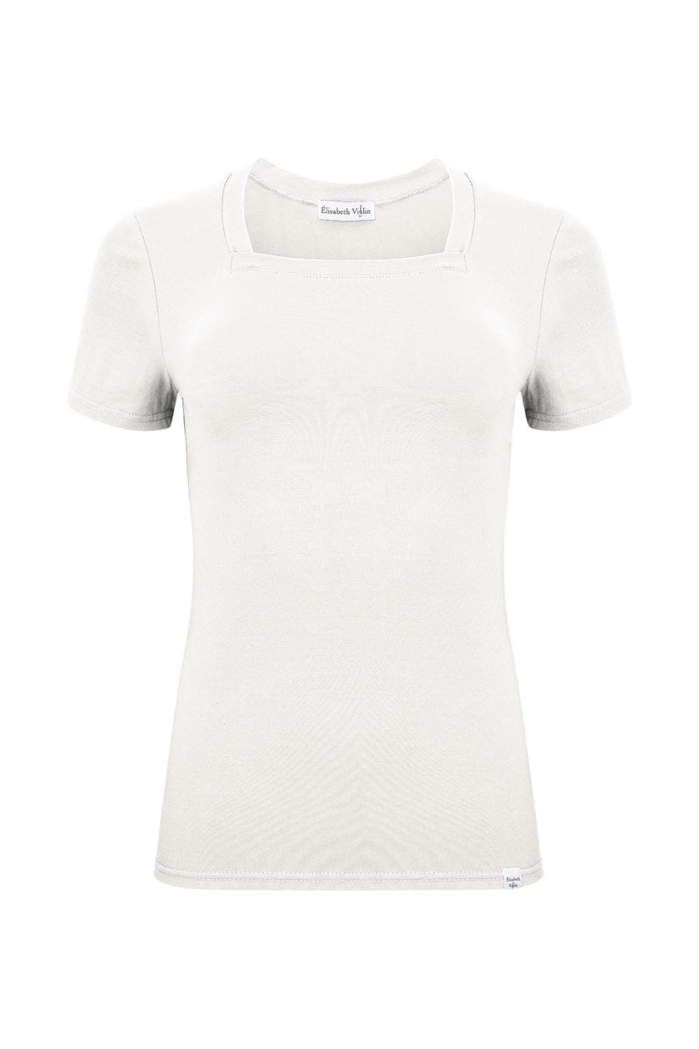 ERICA – Star White - BAWEŁNA GŁADKA – taliowana bluzka z kwadratowym dekoltem i klasycznymi krótkimi rękawami