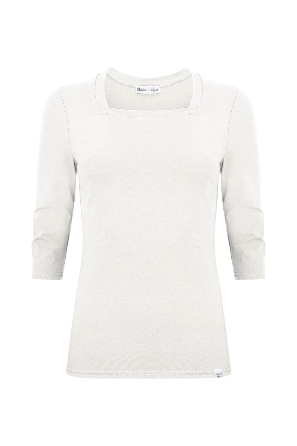 ERICA – Star White - BAWEŁNA GŁADKA – taliowana bluzka z kwadratowym dekoltem i klasycznymi rękawami 3/4