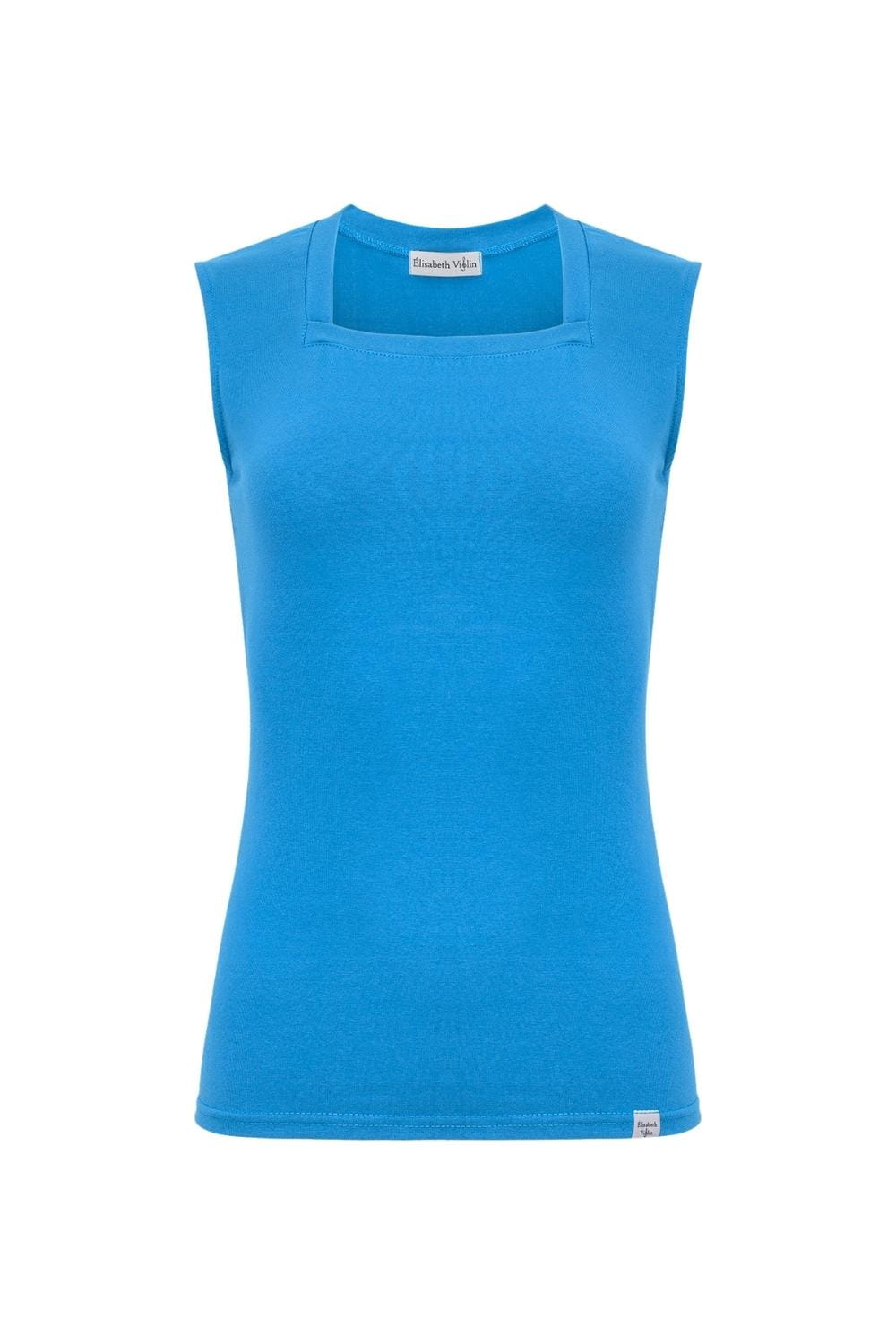 ERICA – Swedish Blue - BAMBUS – taliowana bluzka z kwadratowym dekoltem bez rękawków