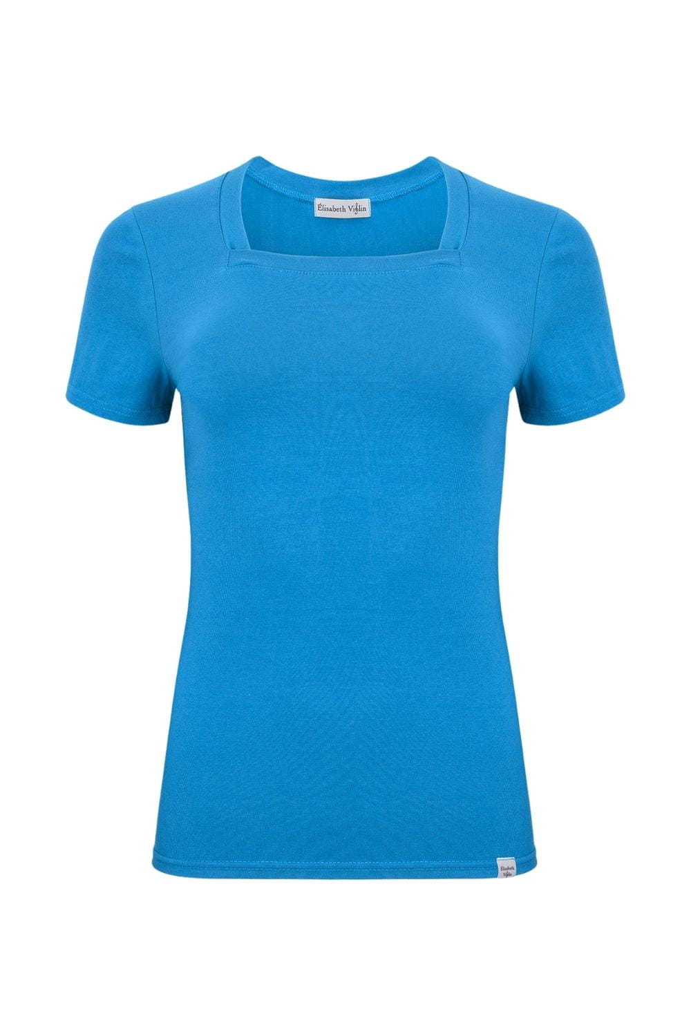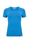 ERICA – Swedish Blue - BAMBUS – taliowana bluzka z kwadratowym dekoltem i klasycznymi krótkimi rękawami